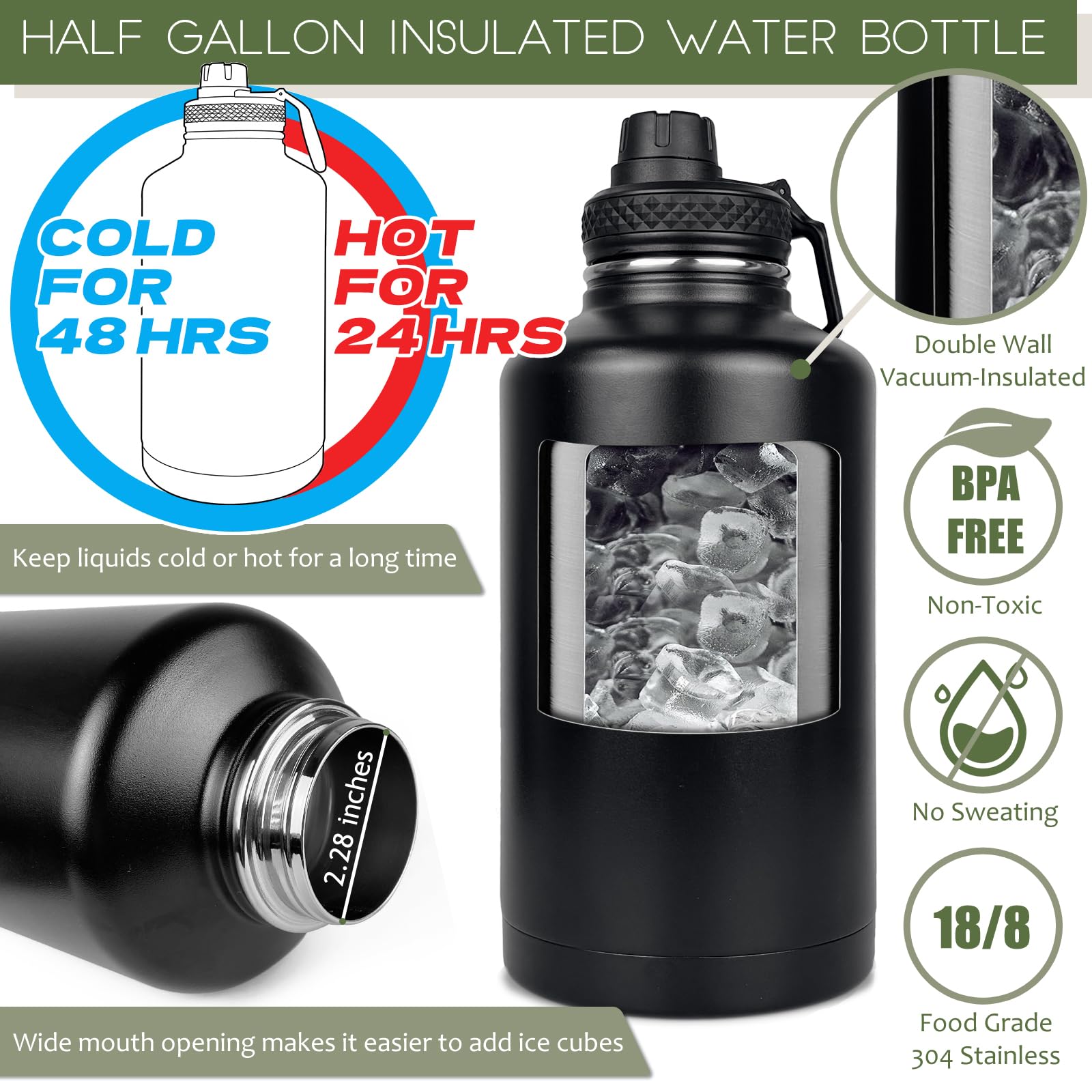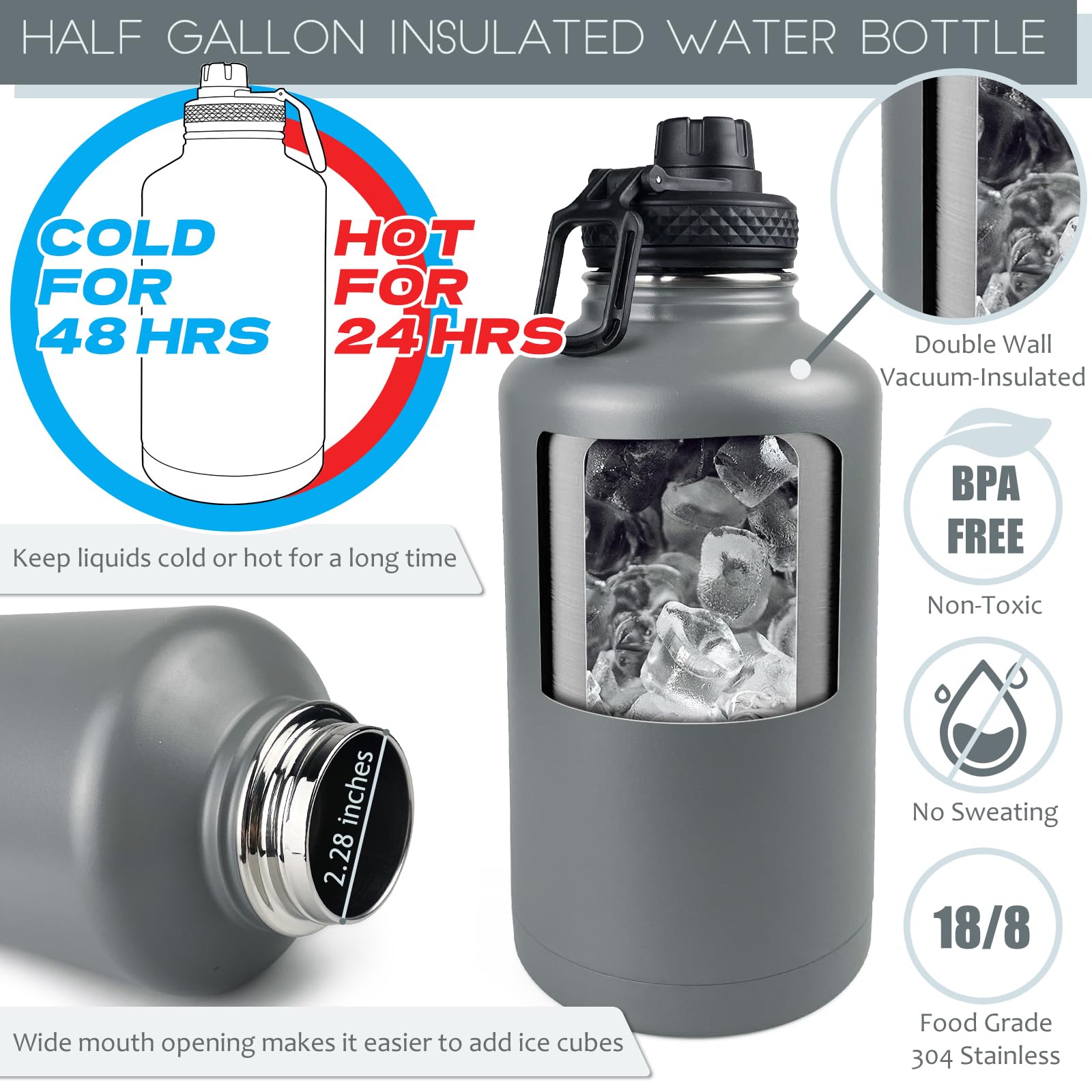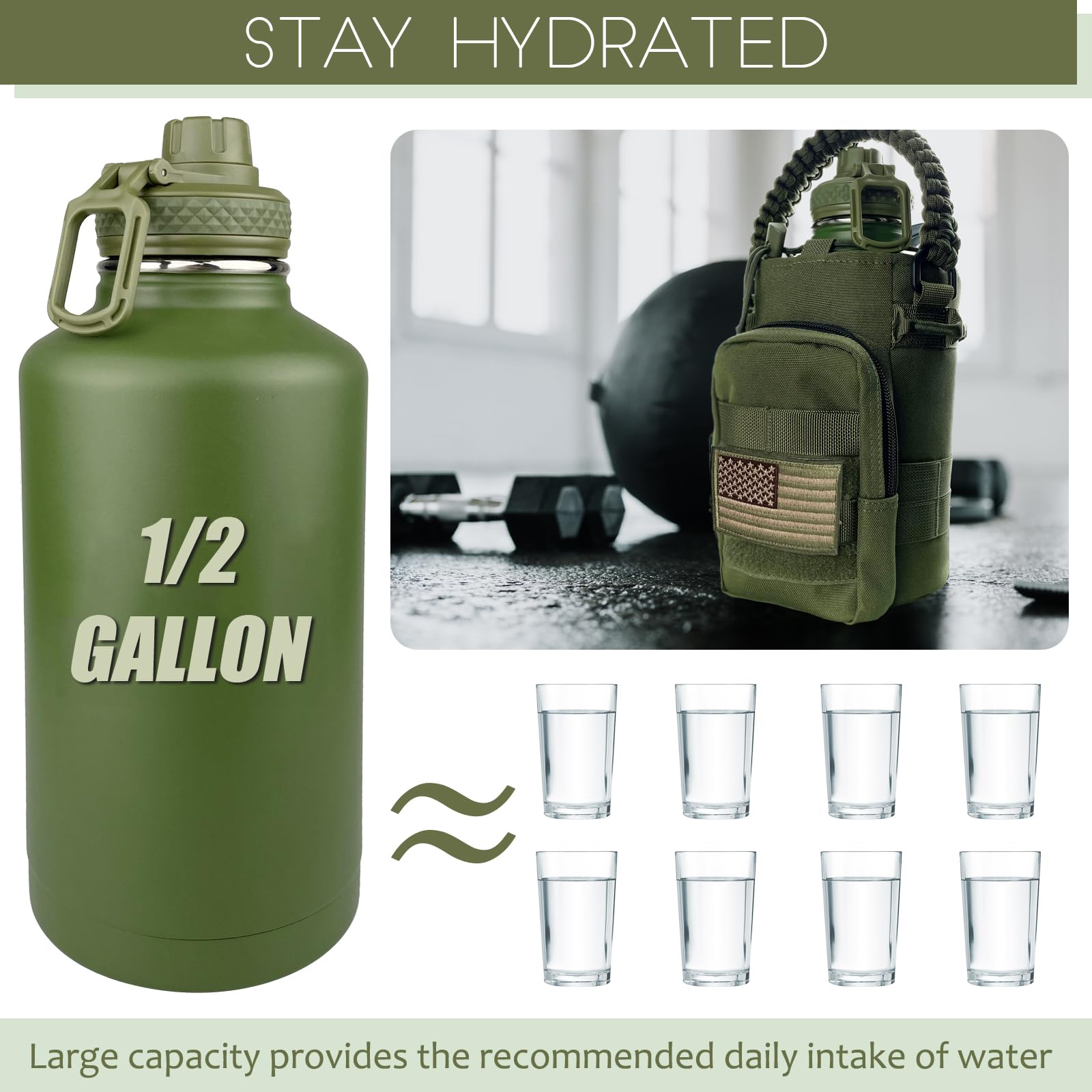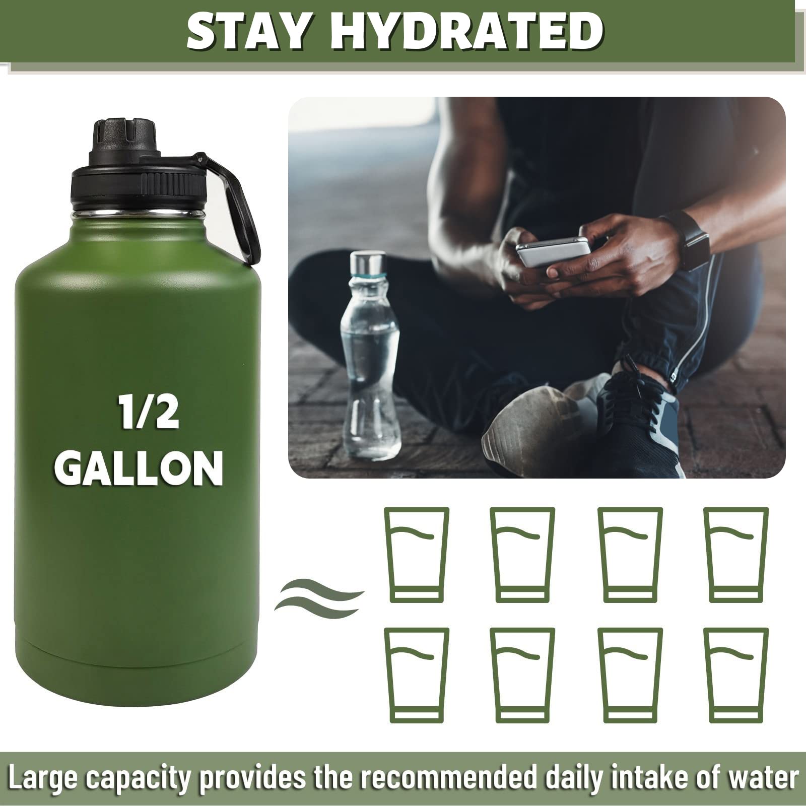 - No Sweating & Rust Resistant ◊ This metal water bottle's army green smooth outer layer is composed of 202 stainless steel, and the inner liner is composed of quality food grade 18/8 stainless steel. Compared with the plastic water bottle, this giant bottle is more solid and lasting, and will not rust or sweat.