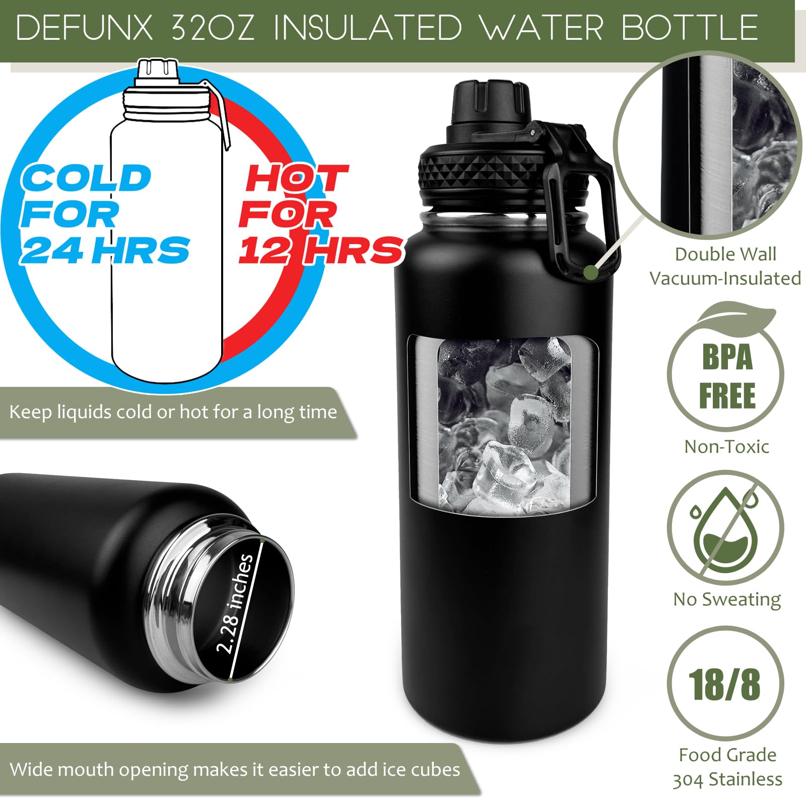 32 Oz Water Bottle with Sleeve - Insulated Bottle with Strap Stainless Steel Gym Water Bottles for Men Sports Workout Hiking All Black