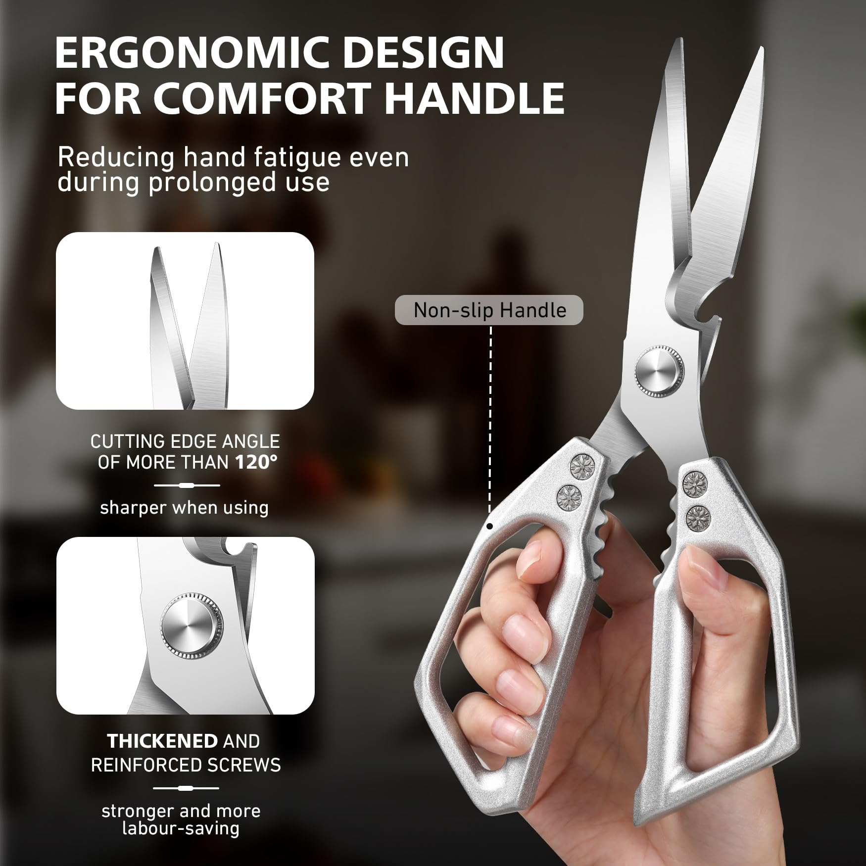 - Unbreakable Stainless Steel Strength: Forged with 4mm premium stainless steel blades and aircraft-grade aluminum handles, our Japanese kitchen scissors outlast flimsy shears. Built to handle a lifetime of poultry, seafood, and tough food prep!