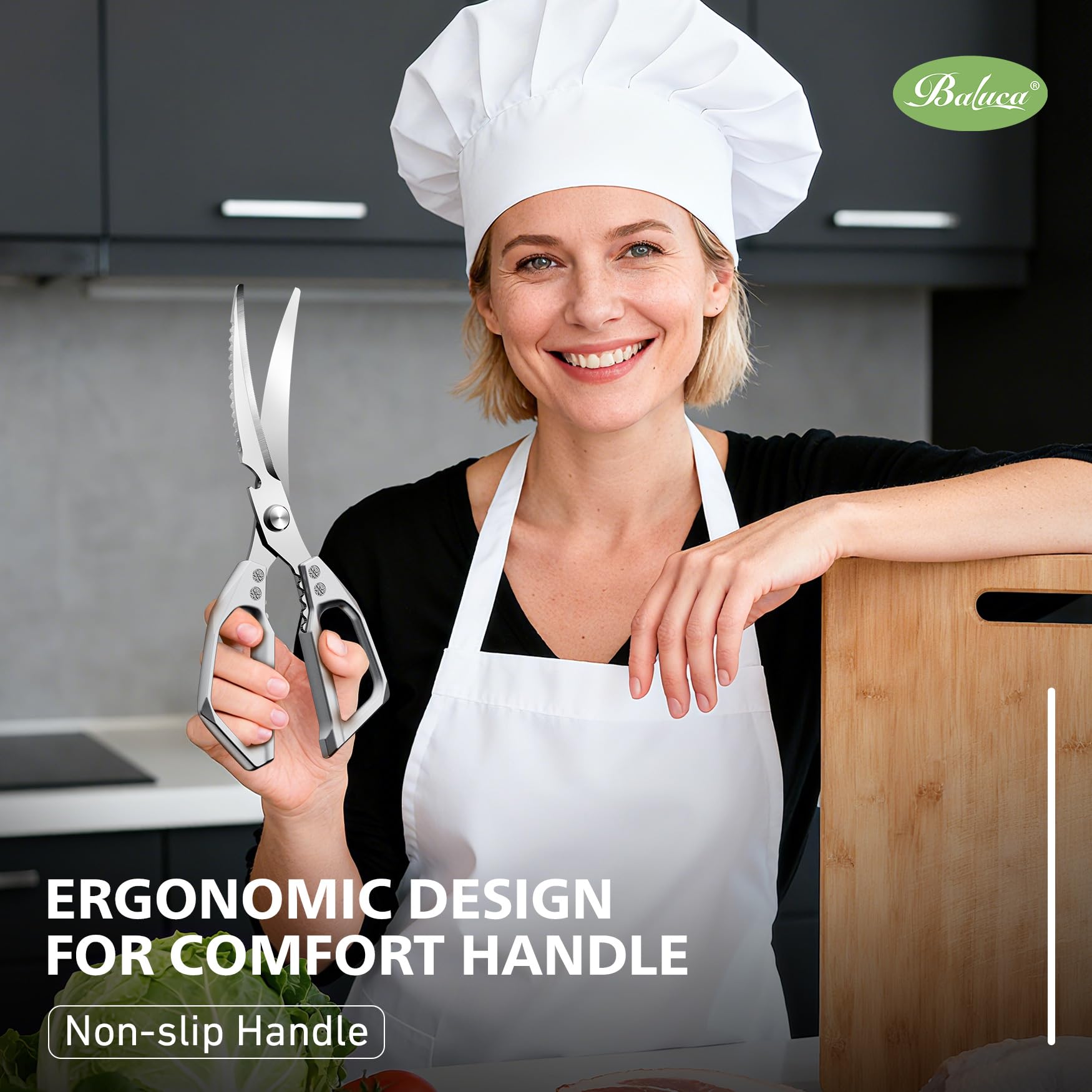 BALUCA Heavy Duty Kitchen Scissors All Purpose - Professional Stainless Steel Japanese Kitchen Shears for Food, Chicken Bones & Turkey | Dishwasher Safe, Sharp Meat & Poultry Scissors (Modern)