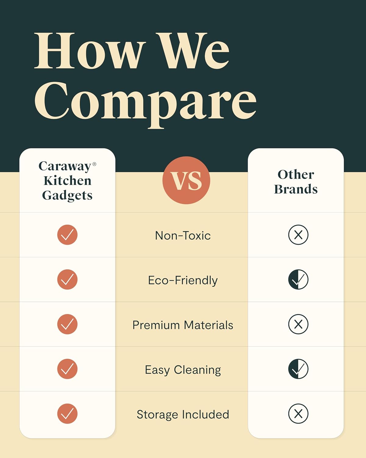 Caraway Kitchen Gadget Set - 5 Piece Kitchen Essentials - Stainless Steel - Includes Can Opener, Pizza Cutter, Garlic Press, Ice Cream Scoop, Vegetable Peeler, and Storage Organizer