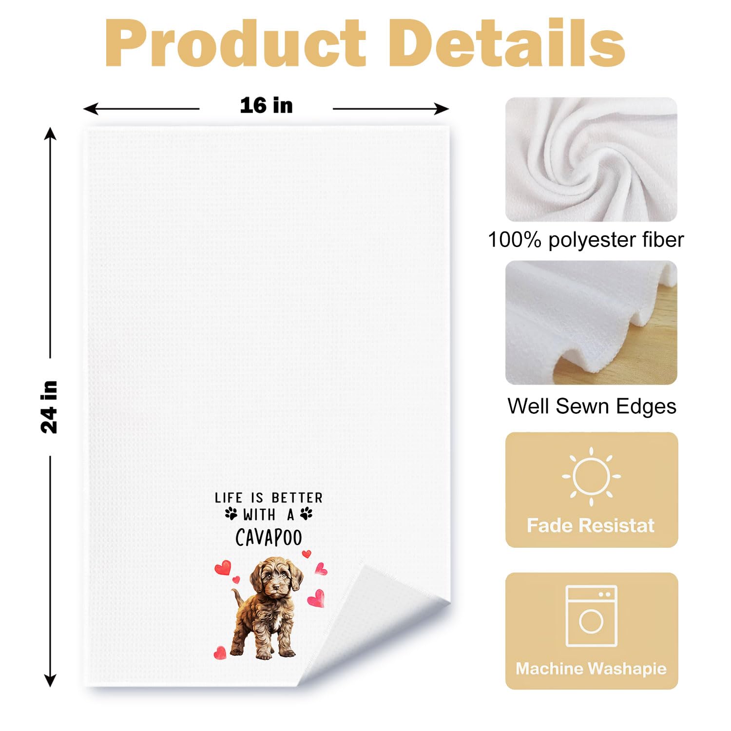 Cavapoo Dog Kitchen Towels, Cavapoo Gifts for Women Dish Tea Towels for Kitchen Decor, Dog Lovers Mom Gifts Decorative Hand Towel for Bathroom, 16x24 Inches