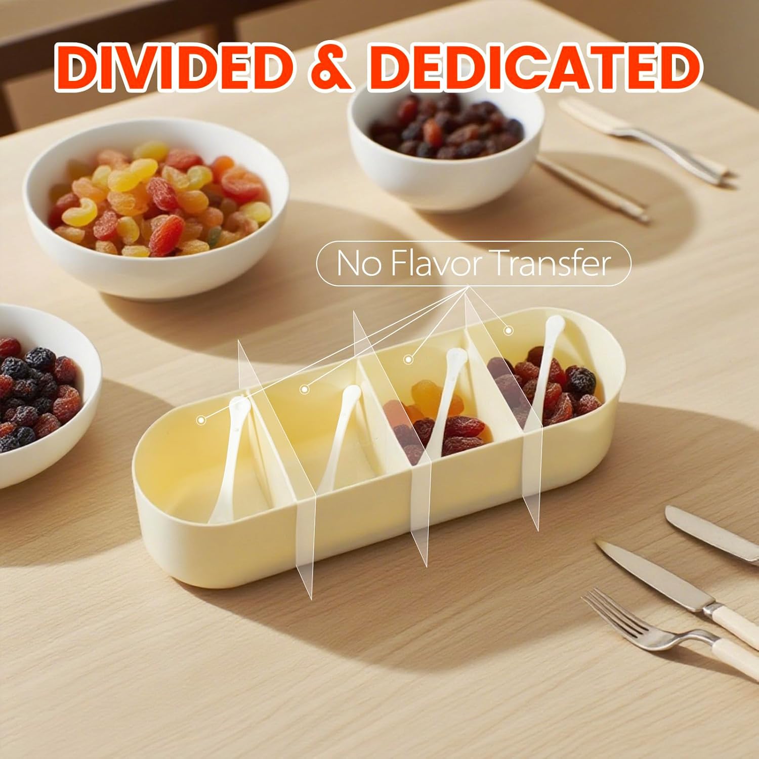 - [4 Individual Compartments with Matching Spoons] Includes four separate compartments to keep spices like salt, sugar, chili powder, or herbs neatly organized. Each section comes with its own spoon, making it easy to scoop without mixing flavors.