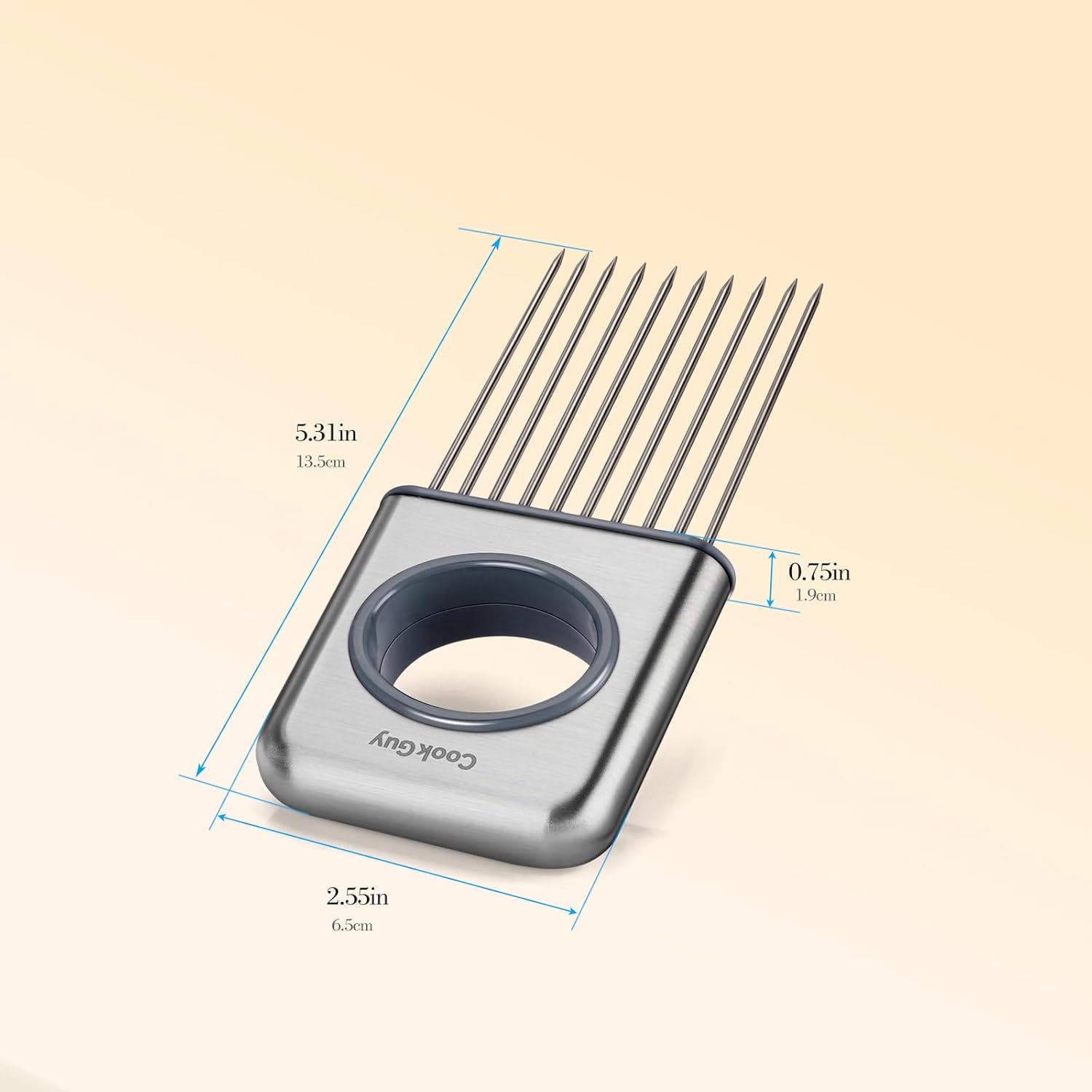 Cook Guy Stainless Steel Onion Holder and Slicer – Multi-Purpose Food Slicing Tool for Onions, Tomatoes, Avocados, Potatoes, Eggs, and More – Easy Grip with 10 Even Prongs