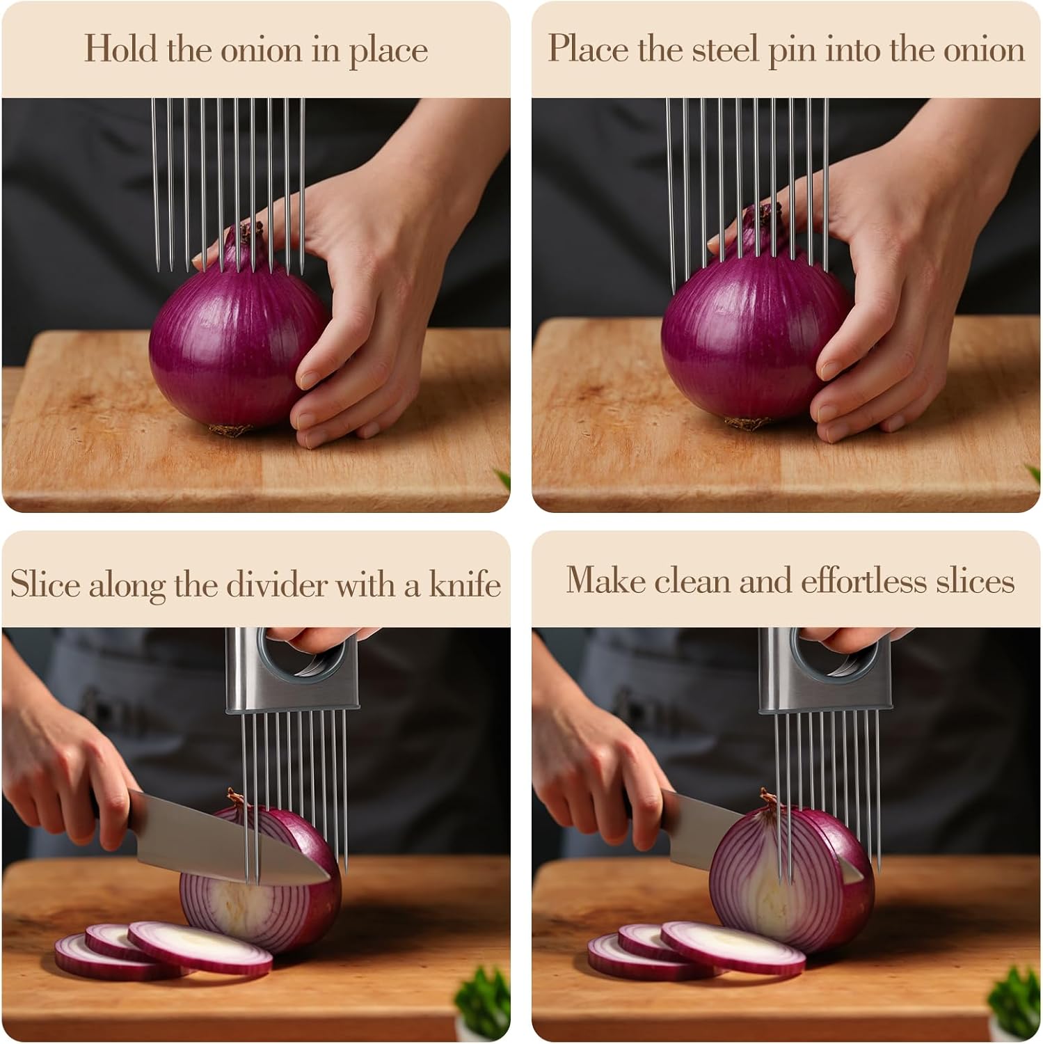 The Cook Guy Stainless Steel Onion Holder and Slicer is a must-have for anyone who values convenience, safety, and precision in the kitchen. With its high-quality construction and ergonomic design, it’s a reliable tool that ensures your meal prep is both efficient and enjoyable.