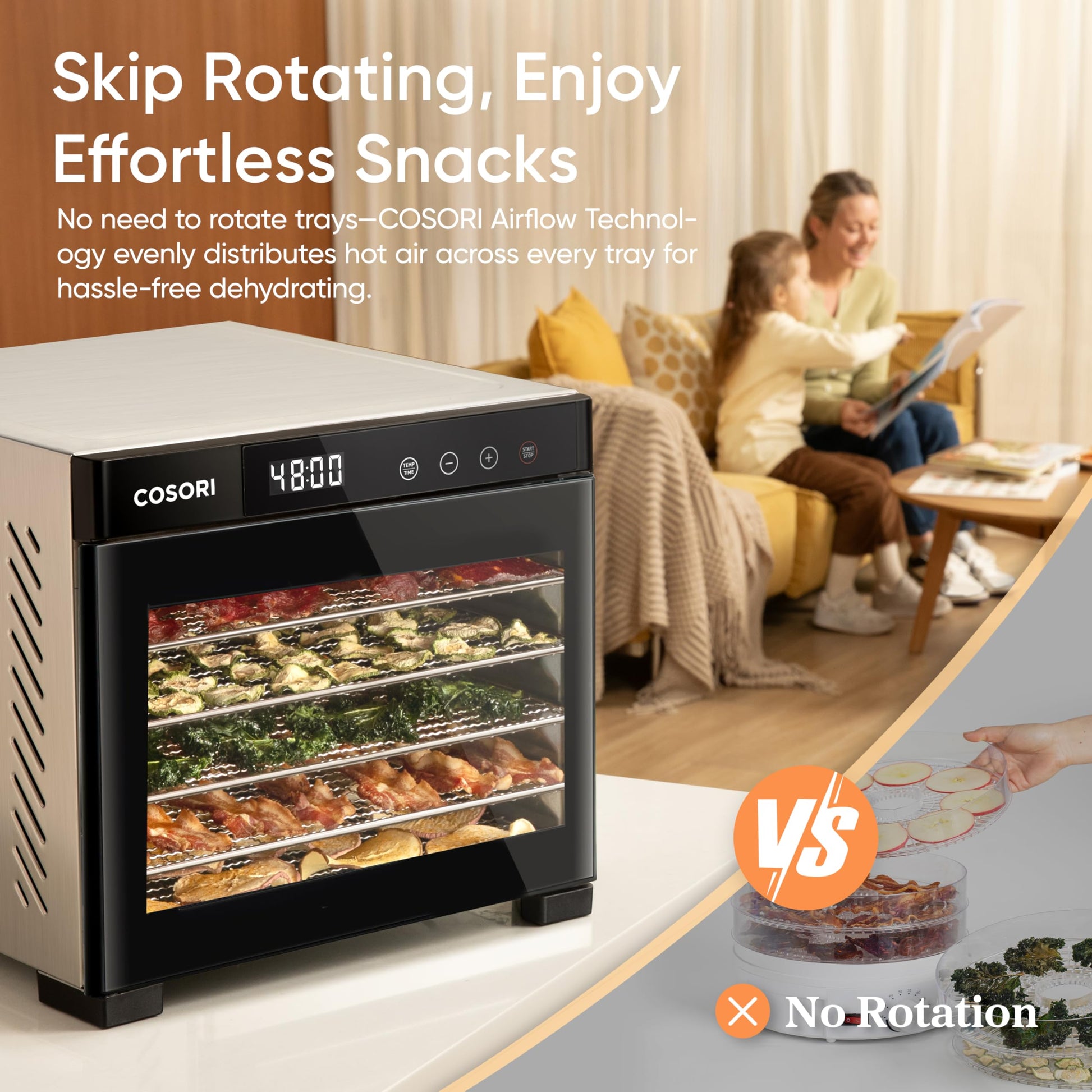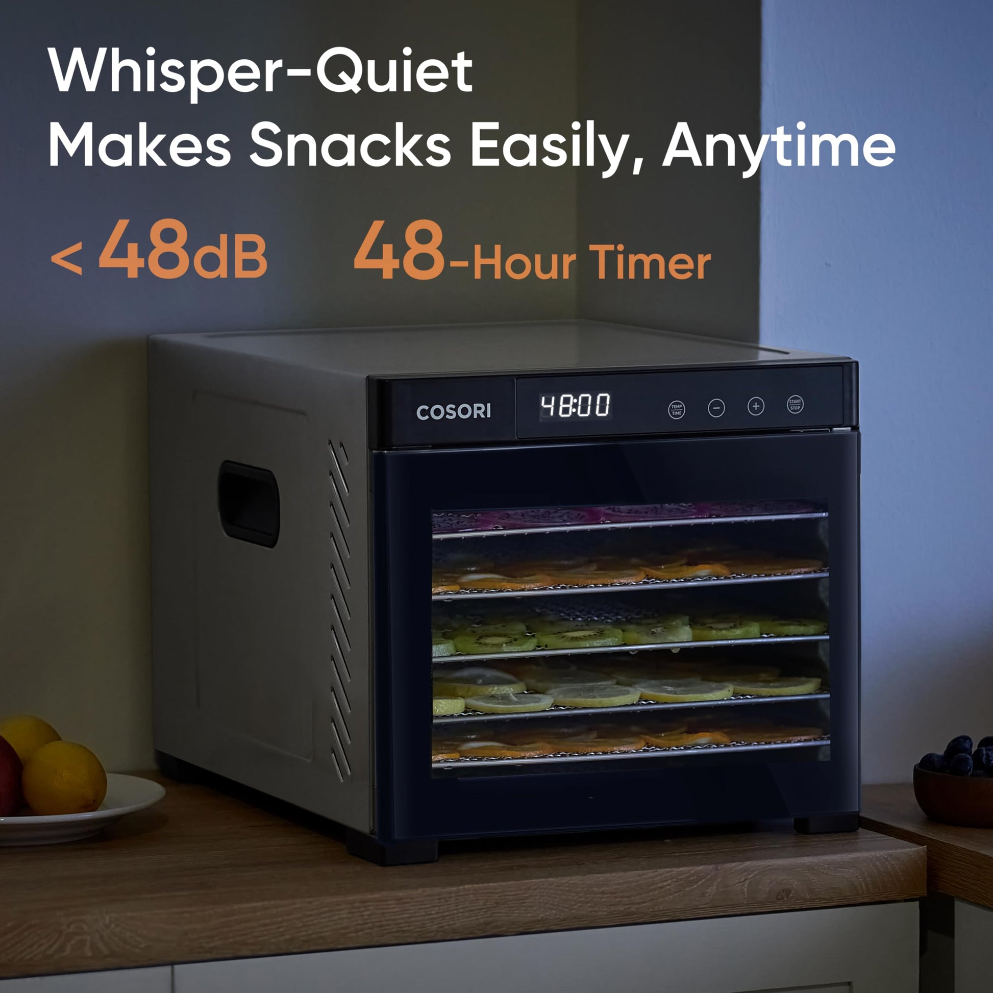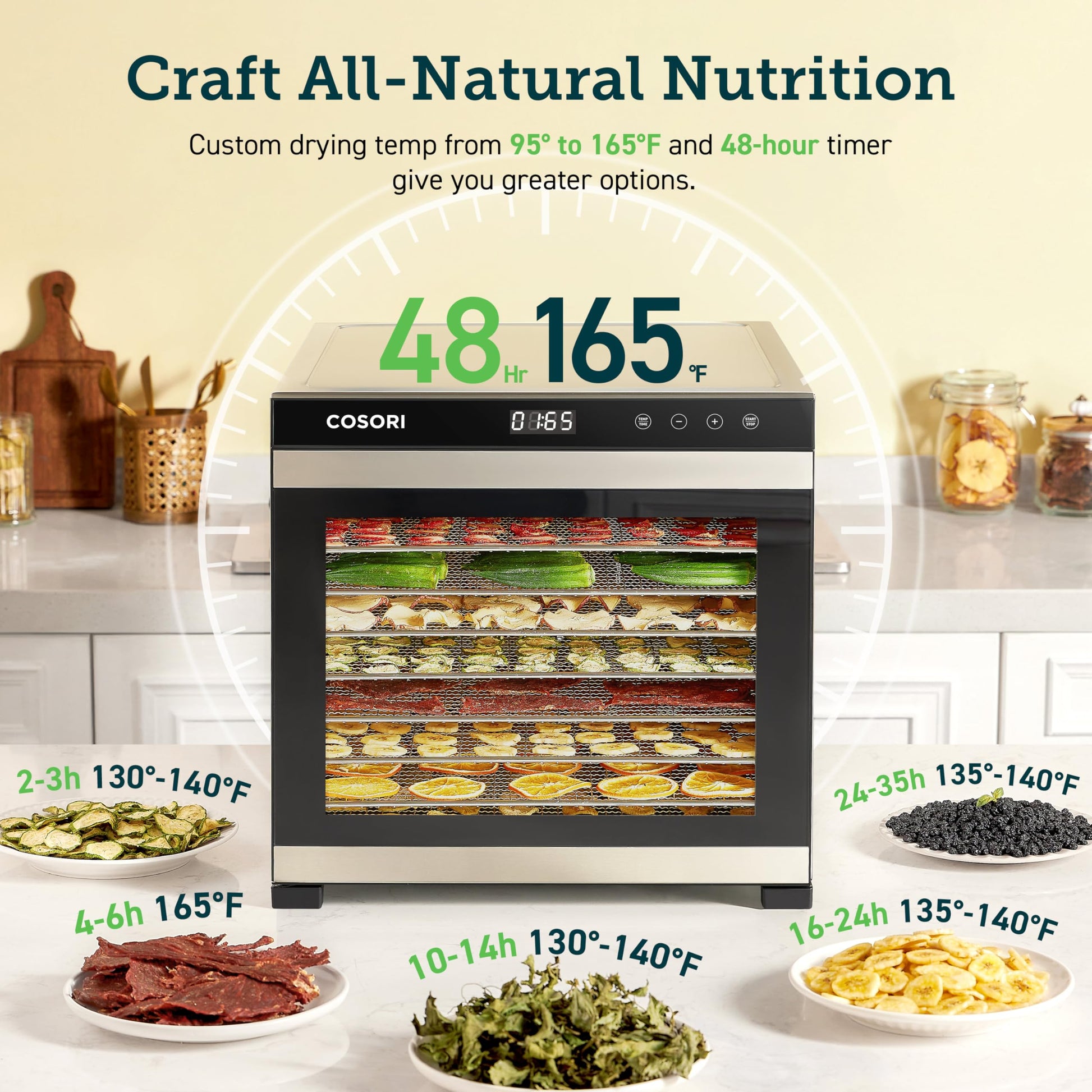 COSORI Food Dehydrator, Bigger Than 7 Trays With Large 6.5" Drying Space, 600W Power Saves More Time Than 480W, 165°F Dehydrated Dryer for Jerky, Dog Treats, Herbs, Meat, Fruit, and Yogurt, Silver