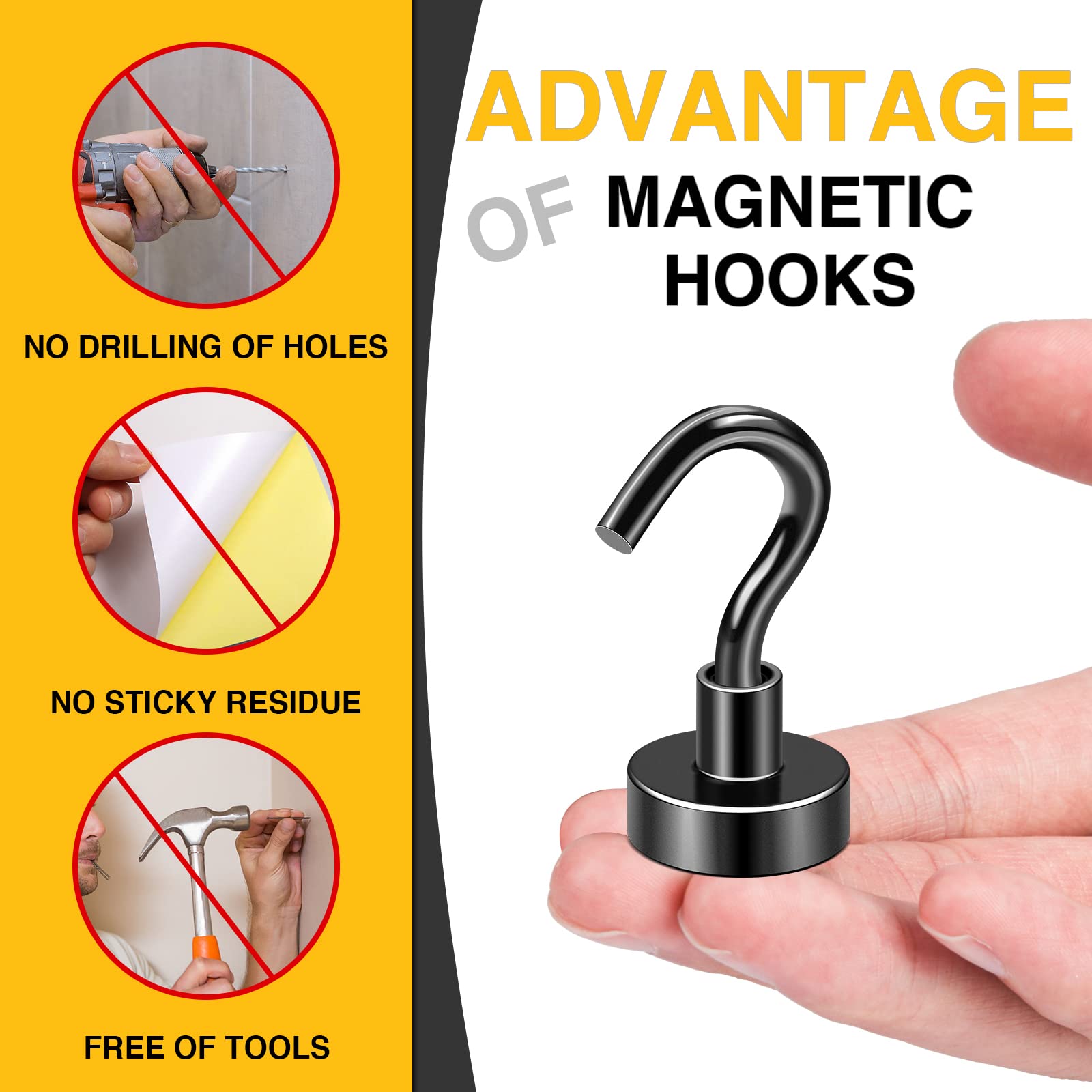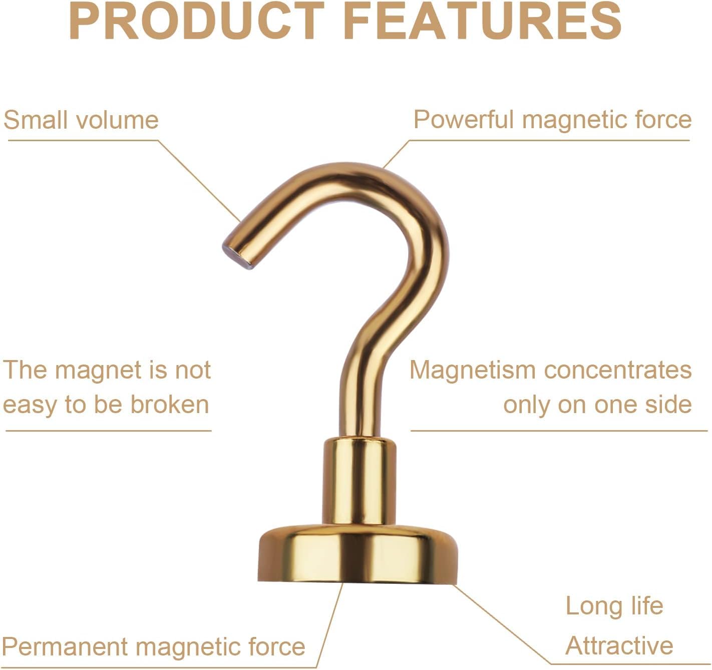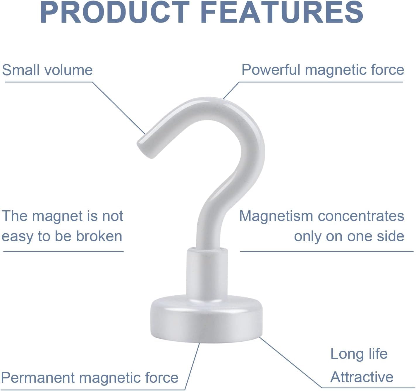 - Powerful & Durable:We provide 3 layers of coating on the metal base, metal hook and magnet: Ni-Cu-Ni, so our magnet hooks have excellent anti-corrosion and scratch resistance. The magnetic hooks use high-quality neodymium magnets, which provide a strong magnetic force and can hang items weighing up to 30 pounds
