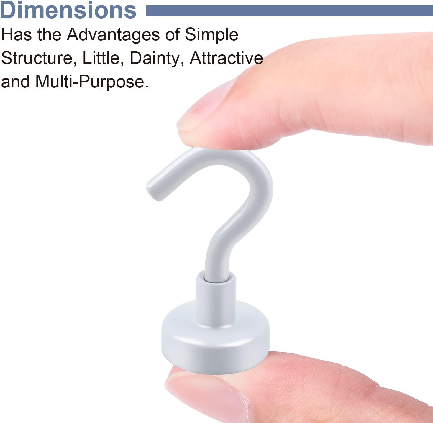 - Convenient Size To Carry:Our powerful magnetic hooks are made of high-quality neodymium magnets, metal base and detachable metal hooks. Each set includes 20 magnetic hooks, with a diameter of 0.63 inches and a height of 1.38 inches. The precision workmanship and small size are very convenient for carrying and using