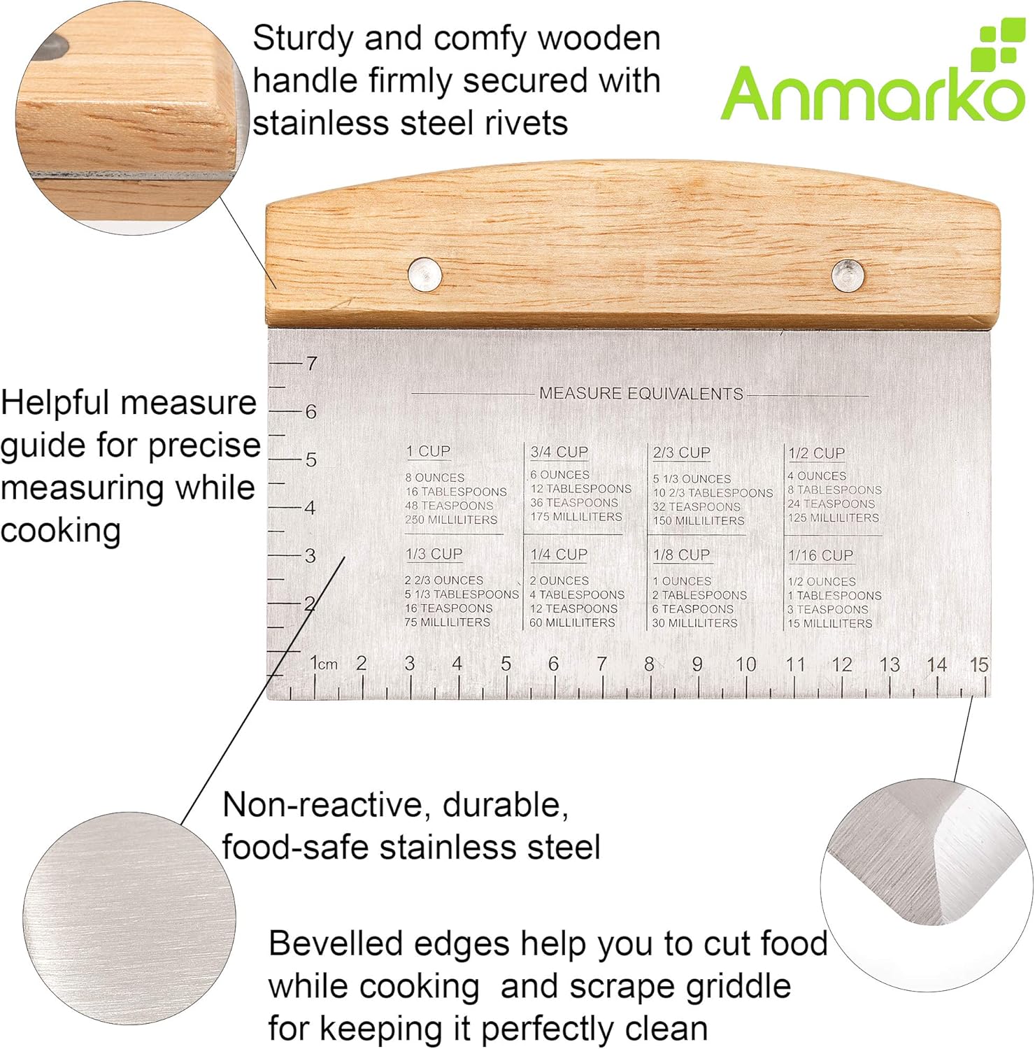 - Firm grip - ergonomic and comfortable non-slip wooden handle. Great for scraping up food ingredients to easily transfer to a mixing bowl or for cleaning your work surface.