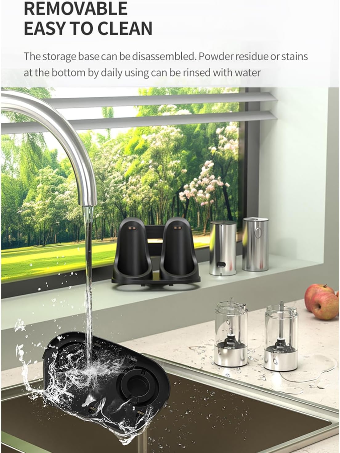 - Transparent Larger Container – Made of durable Acrylic material, this spice container holds 95ml(2.33oz), reducing refill frequency. The detachable container enables convenient refilling and cleaning for freshness and hygiene. Includes a cleaning brush and organizer base for added convenience