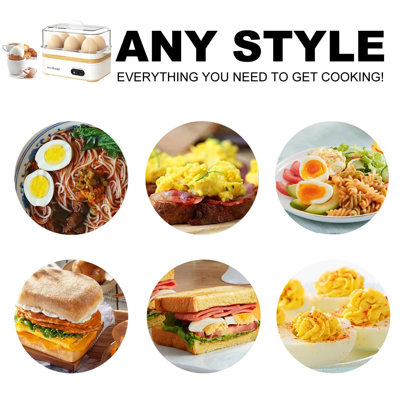 - MULTI FUNCTIONAL EGG COOKER: The Evoloop egg boiler is ideal for a busy solitary person or family to make hard-boiled eggs, soft-boiled eggs, poached eggs, deviled eggs, egg sandwiches, scrambled eggs, the ideal dish for any breakfast and special event