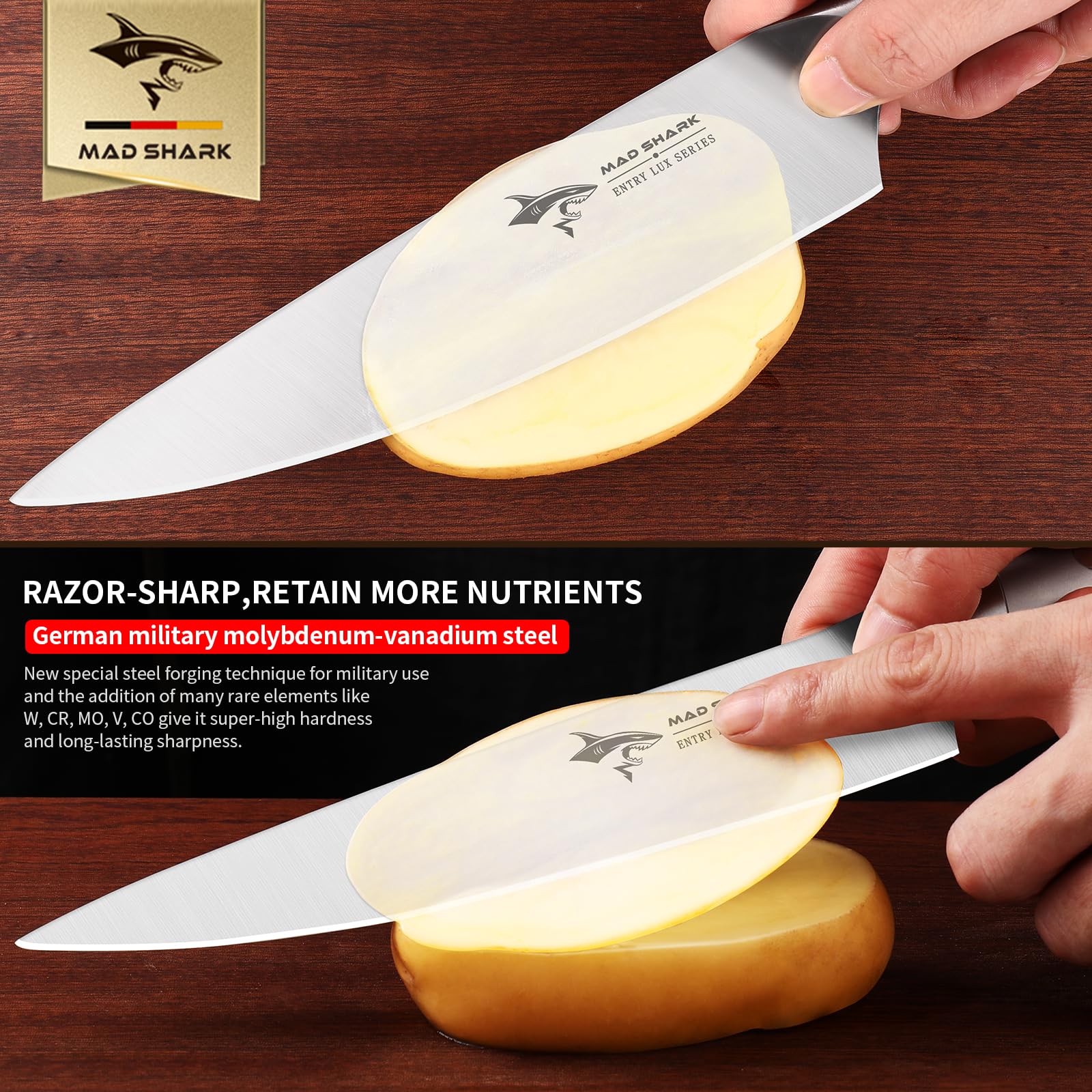 - Perfect Gift for Cooking Enthusiasts: Packaged in a classic gift box, the MAD SHARK cooking knife makes an exquisite gift for any occasion. Ideal for birthdays, holidays, or special celebrations, this elegant and practical kitchen gift is sure to delight anyone who loves to cook, making it the perfect present for your loved ones.