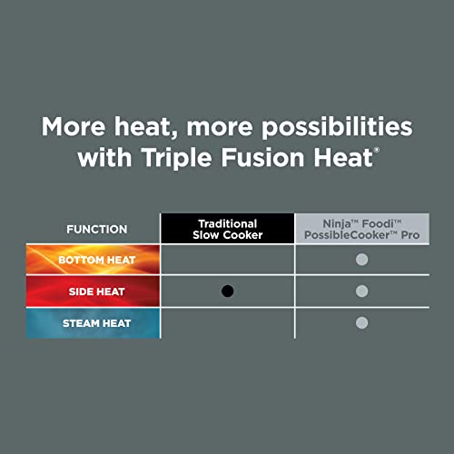 Meet the Ninja® 14-in-1 PossibleCooker™ PRO, the versatile cooker that makes anything possible. This go-to cooker can replace 14 cooking tools and appliances, offering cooker-to-oven-to-table functionality. Cook up to 30% faster than a conventional oven* with Triple Fusion Heat®, which combines bottom, side, and steam heating elements to unlock even more cooking options. *Tested on 6-lb chickens.