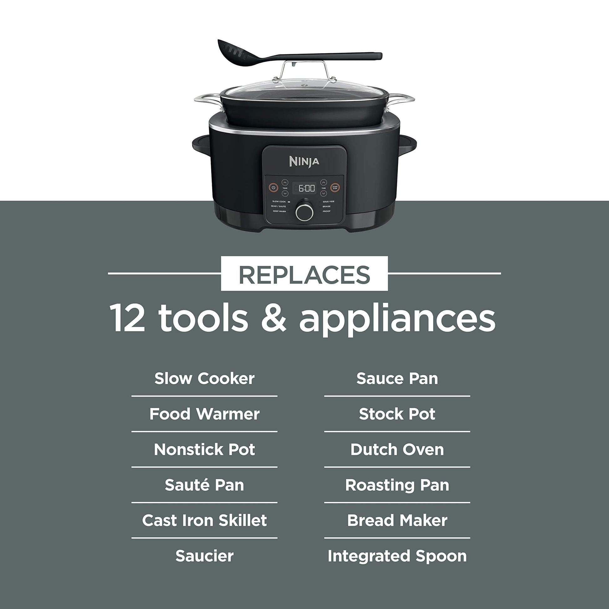 - REPLACES 14 COOKING TOOLS & APPLIANCES: This cooker replaces the need for a slow cooker, steam oven, food warmer, nonstick pot, sauté pan, cast iron skillet, saucier, steamer, saucepan, stock pot, Dutch oven, roasting pan, bread maker, and utensil.