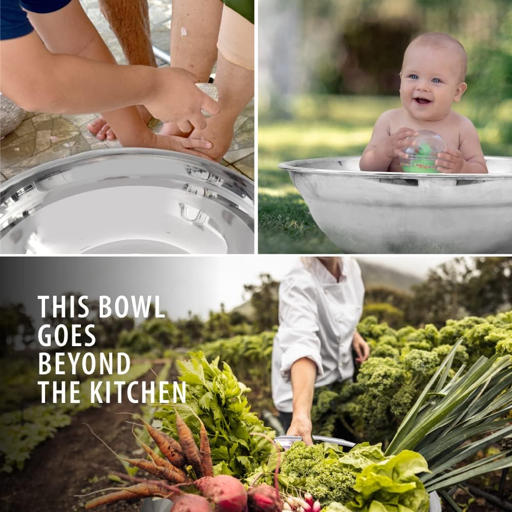 Oversized All-Purpose Stainless Steel Bowl for Home & Commercial, 16 Qt, 15 L, Made in Korea, Premium Stainless Steel, No Dulling & Rusting, For Prepping, Baking, Mixing, Marinating & Brining Kimchi