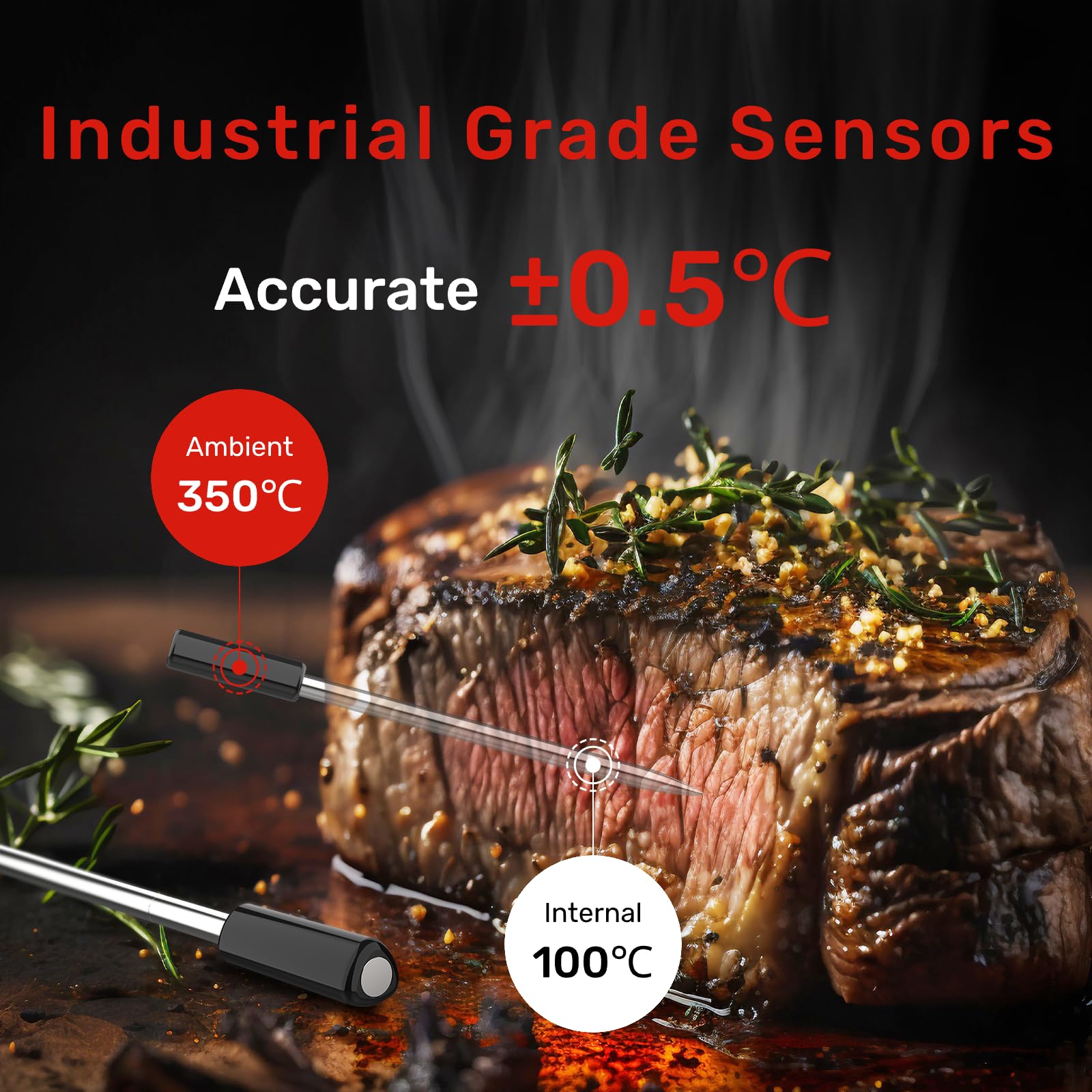 - Stable and Reliable: The wireless meat thermometer combines WiFi and Bluetooth functions, no need to worry about the influence of walls or other obstacles, and the double protection signal is more stable