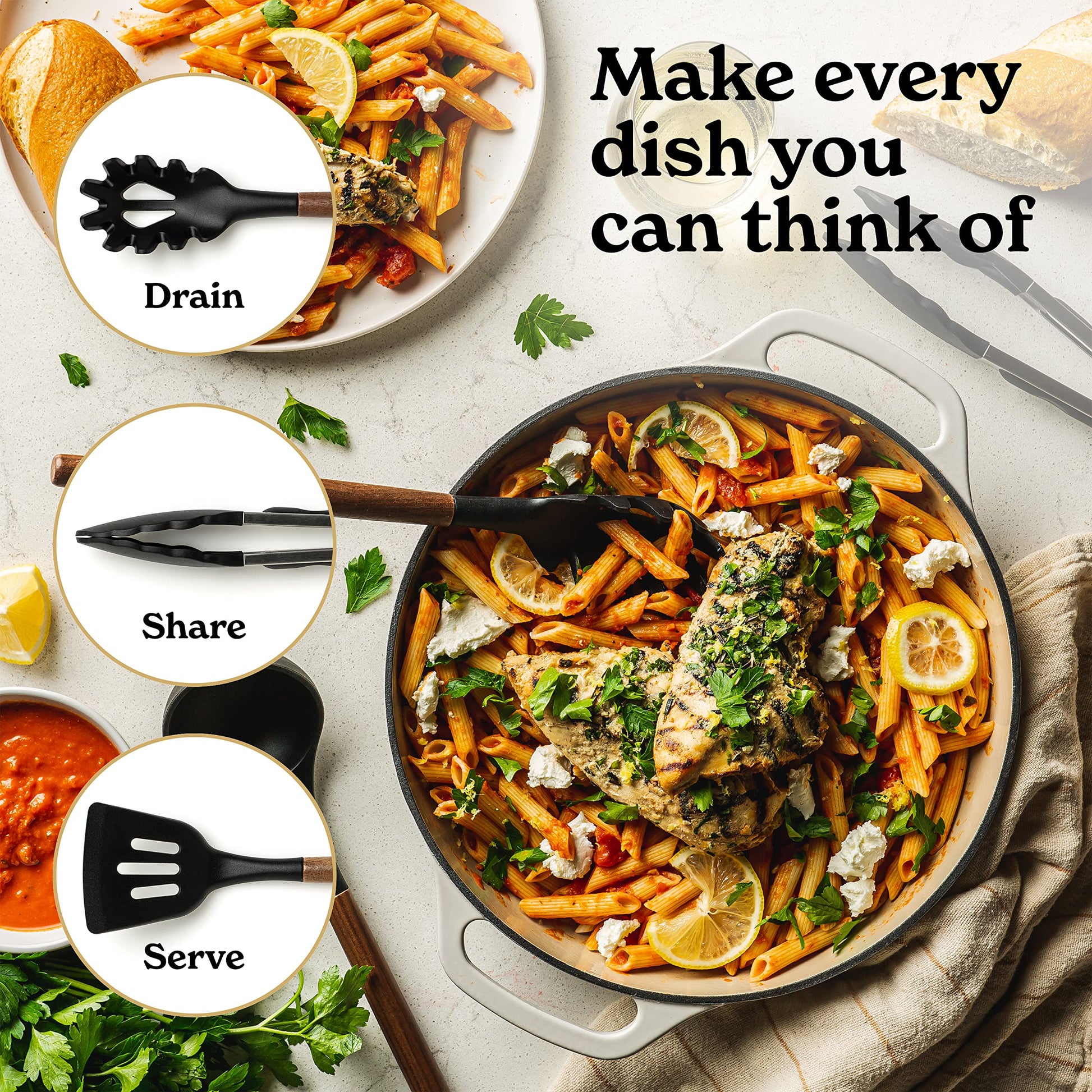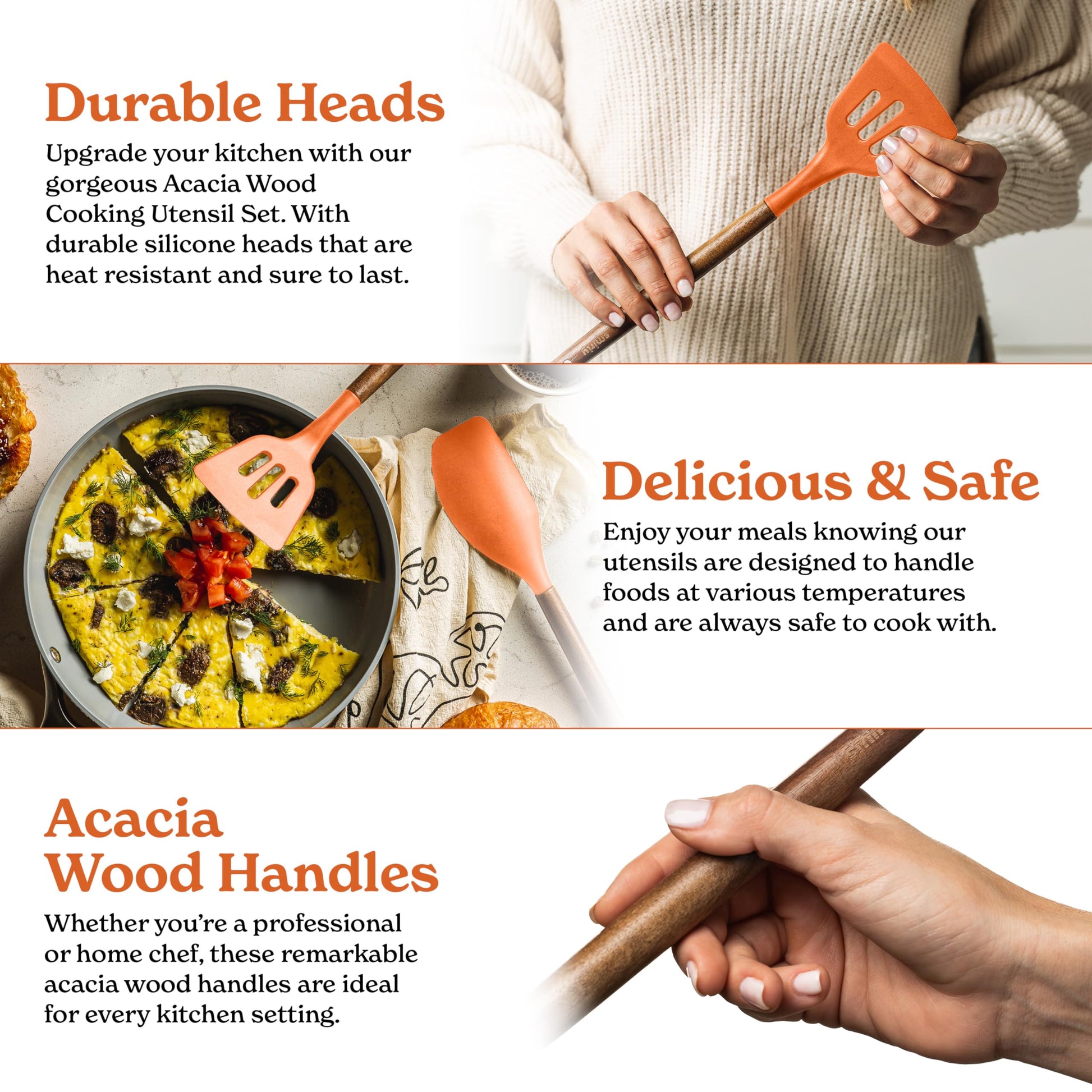 - ✅ Effortlessly Functional - Compliment your kitchen appliances with kitchen supplies and kitchen necessities that will make your kitchen the heart of your home. Our durable kitchen tools offer top quality features and convenience. Made from heat-resistant silicone with beautiful walnut wood handles, they are easy to clean, and wont warp or melt.
