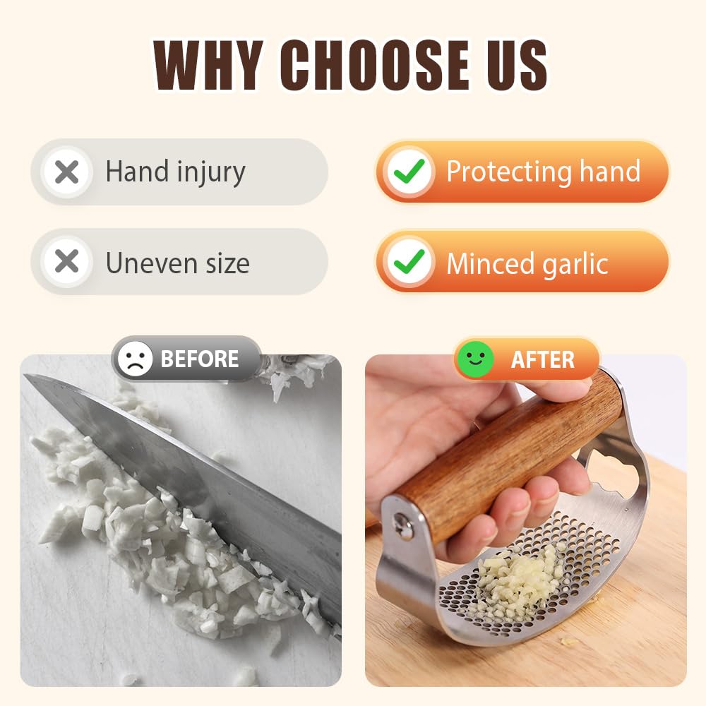 - 【Practical Kitchen Gift Option】This professional garlic mincer kitchen gadget with a wooden handle makes a thoughtful gift for family chefs, streamlining cooking tasks and enhancing culinary results for anyone who enjoys preparing meals.