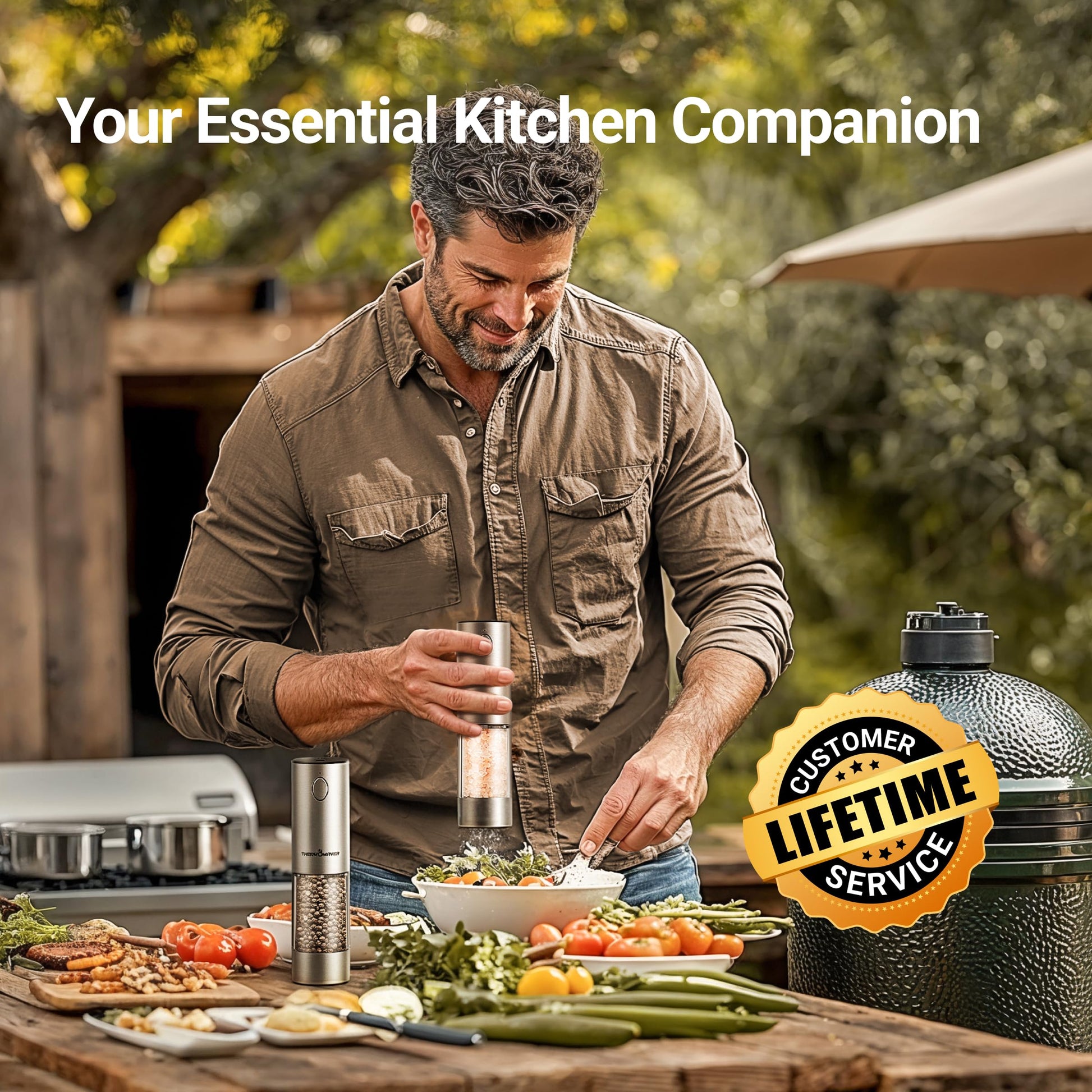 - Premium Stainless Steel Construction: Made with high-quality stainless steel, this electric salt and pepper grinder set is both durable and stylish, adding a touch of elegance to your kitchen or dining table.