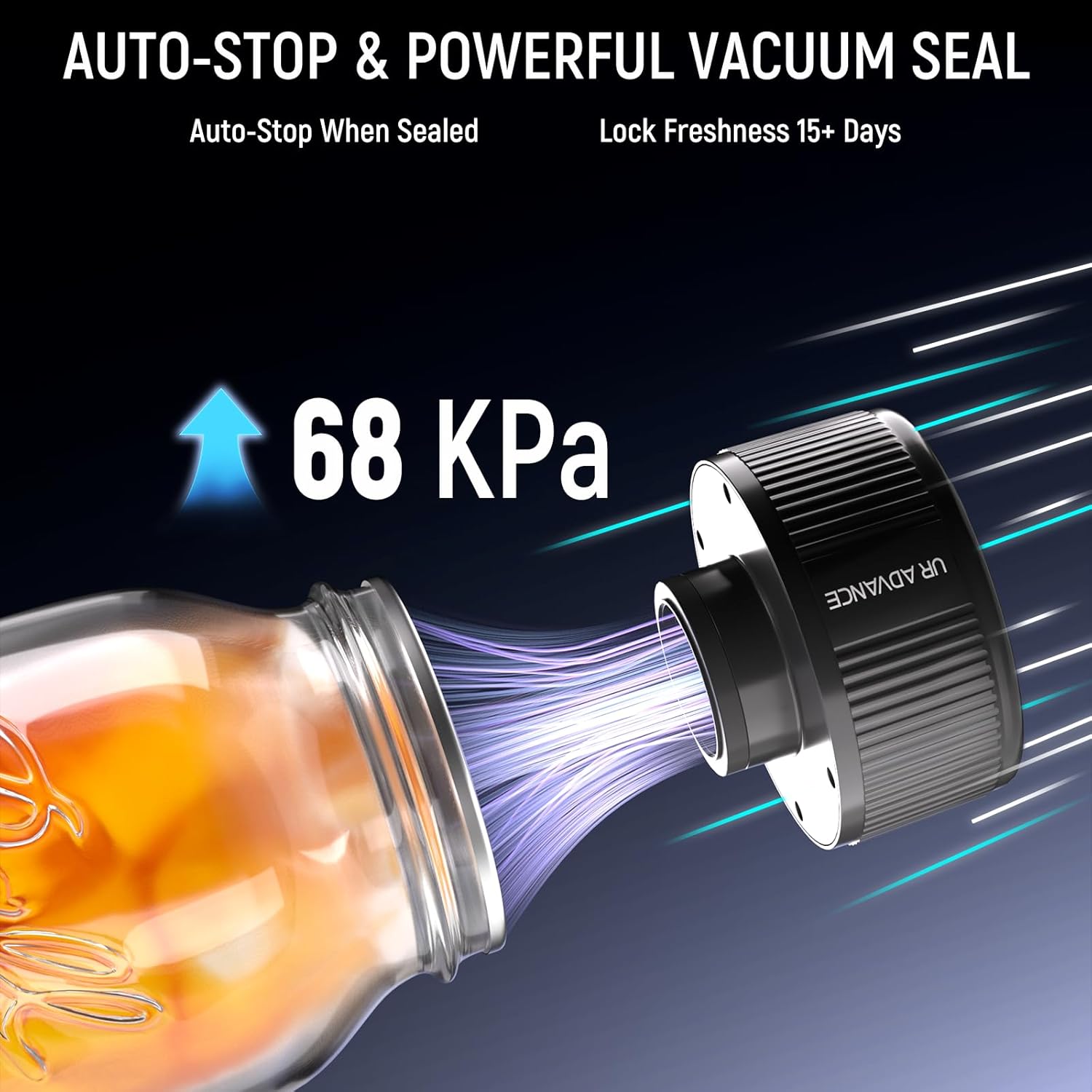 - 【2nd Gen 3-in-1 Sealing & No Converter Needed】Our electric mason jar vacuum sealer designed for Ball/Kerr jars, vacuum bags, and containers achieve perfect seals in 7-20 seconds! It works with both Wide (3.31 in/84 mm) & Regular(2.67 in/68 mm) Mouth Mason jars without needing an adapter. One-touch start-simple and fast sealing.