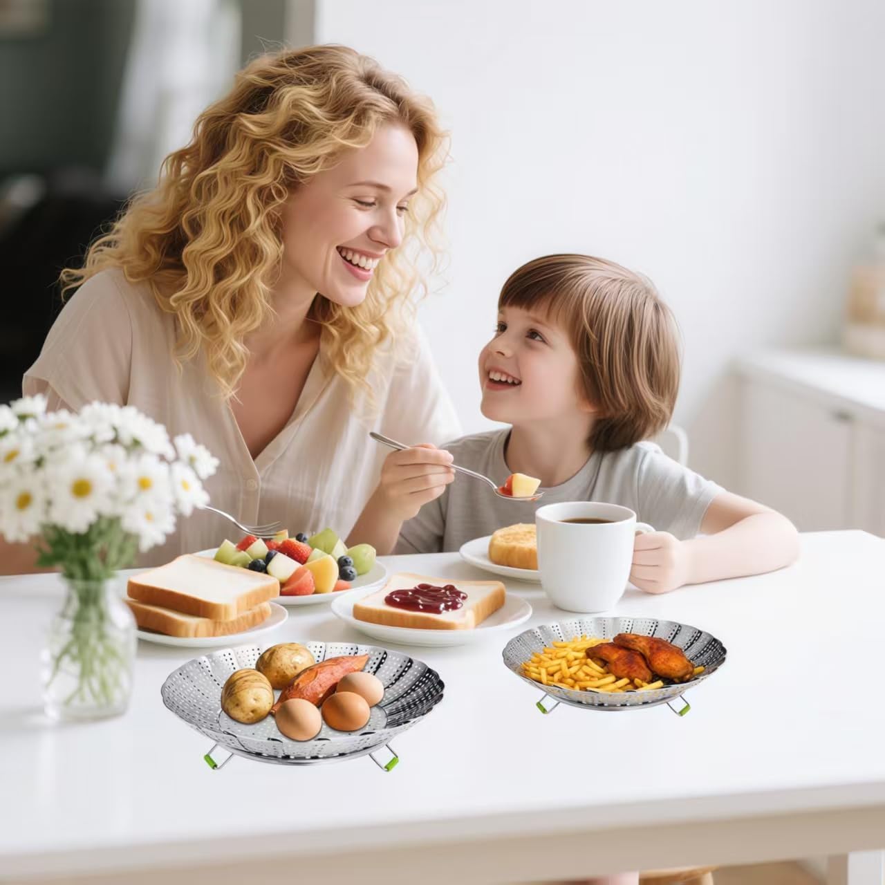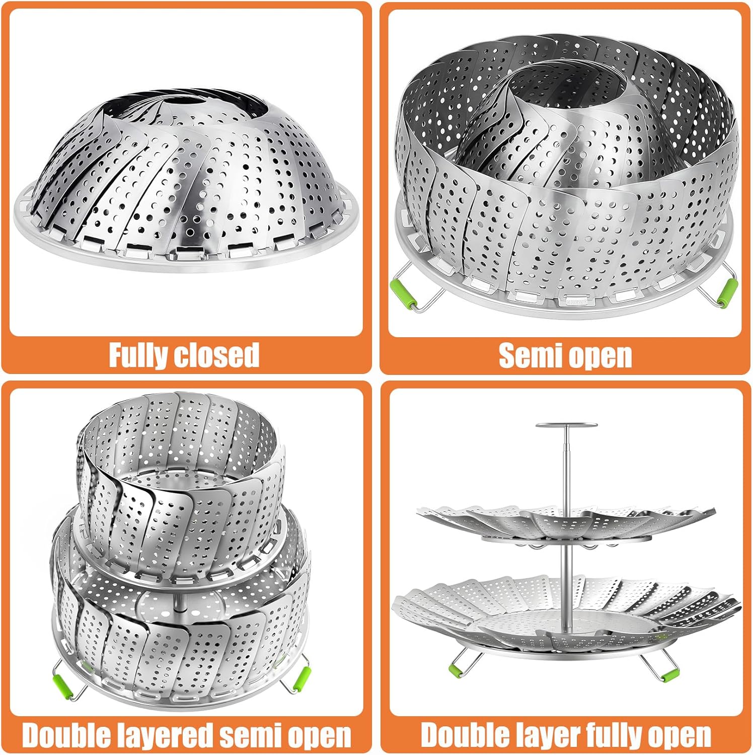 - EASY TO CLEAN & EXTREMELY COMPACT:Wash these steamer baskets for cooking quick under the tap. The clever veggie steamer basket folds flat when not busy steaming. Store this tiny steaming basket anywhere – it takes hardly any space