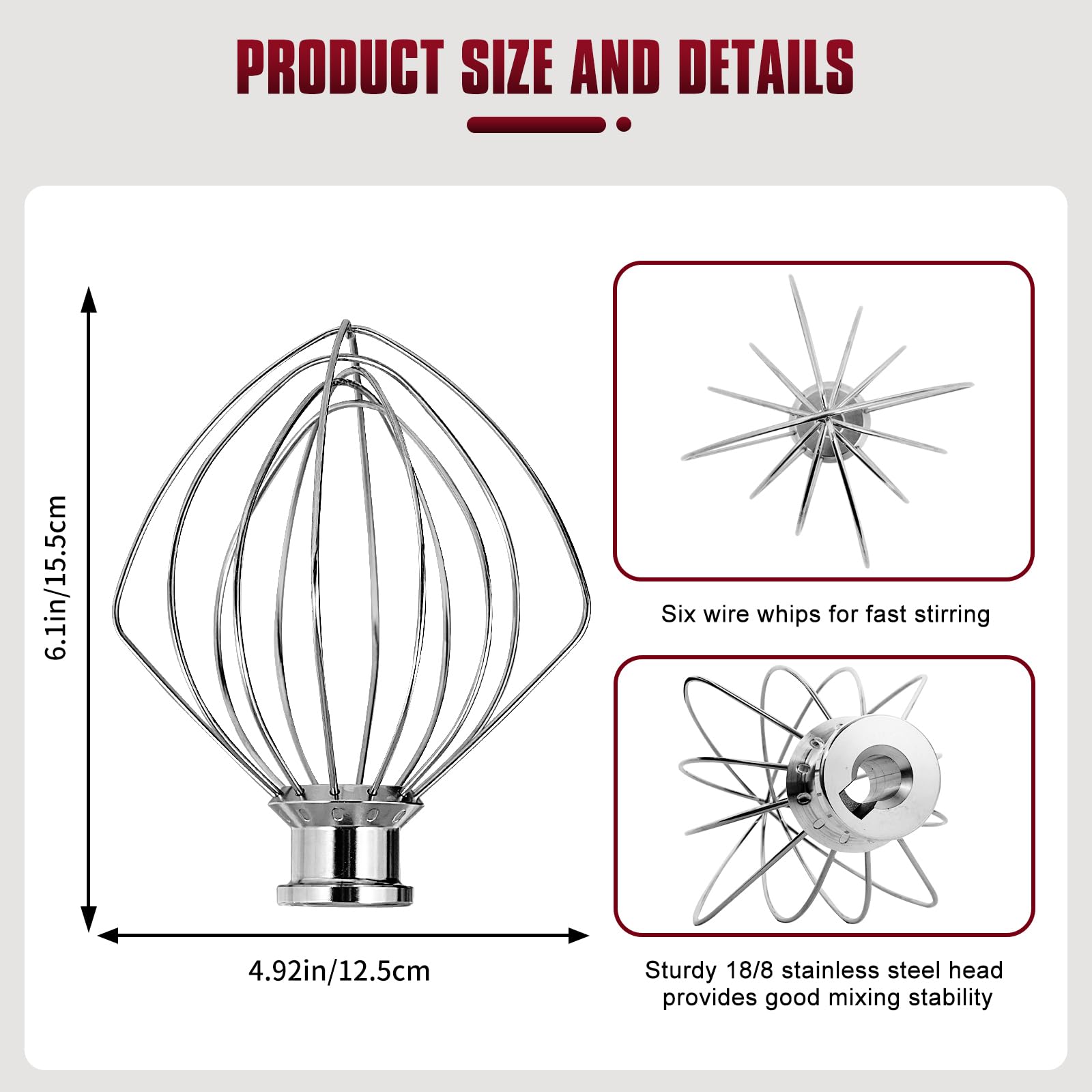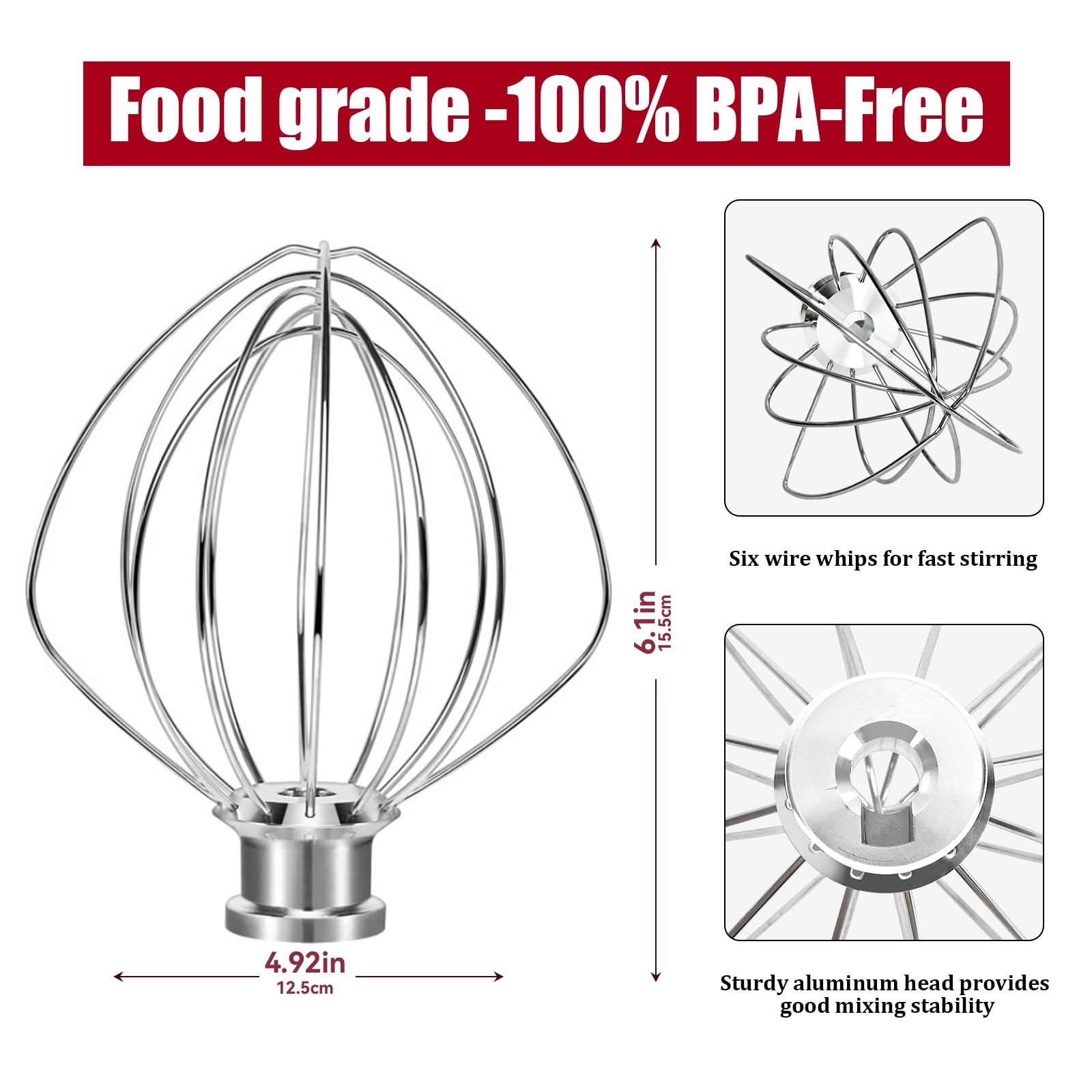 - Works Like The Original - The 6-wire whip quickly incorporates air into ingredients for fluffy whipped cream, perfect boiled frostings and cakes with whipped egg whites, making your baking effortless, kitchen aid attachments for mixer.