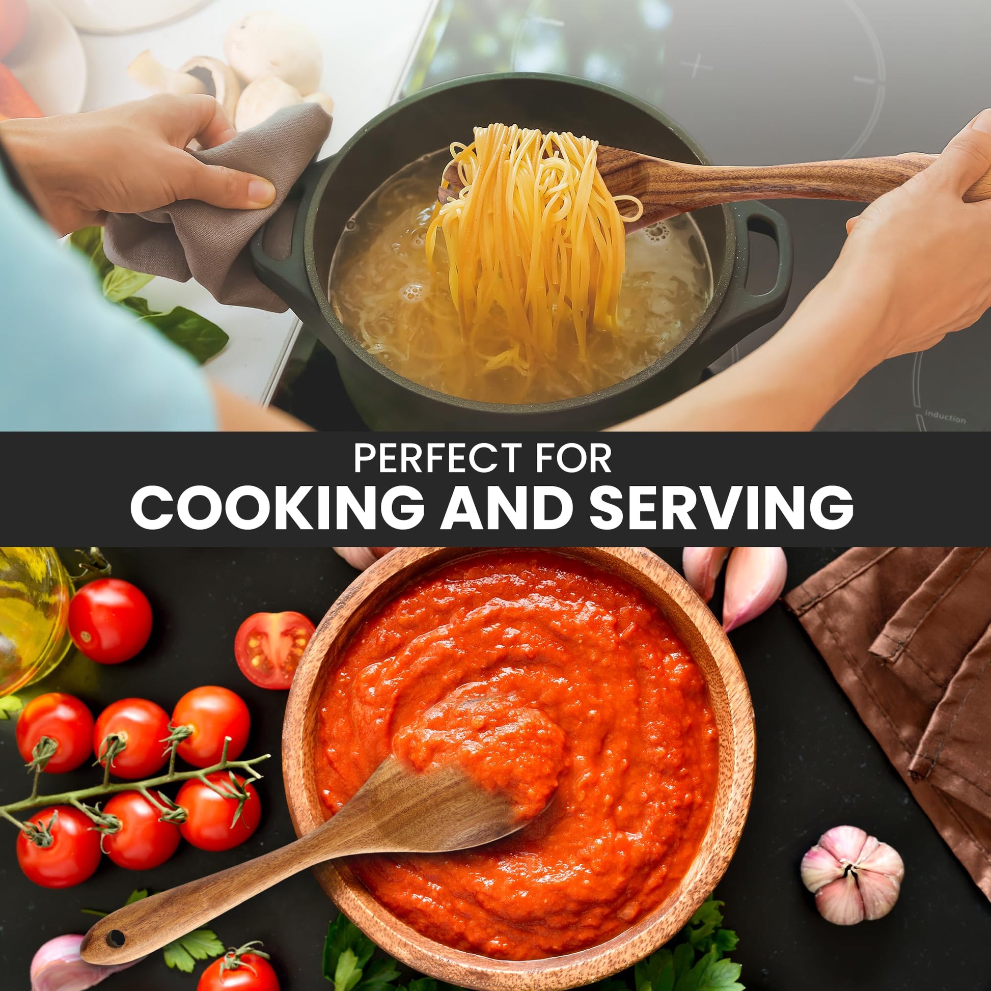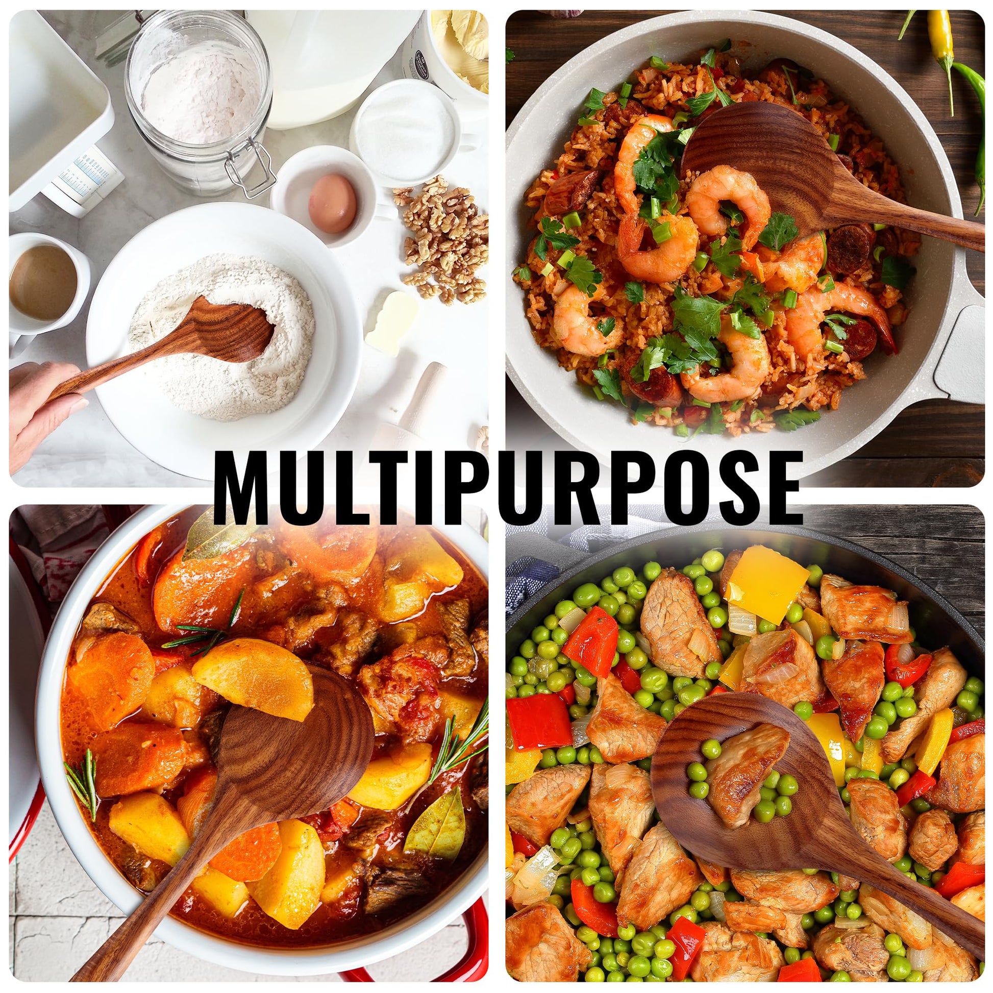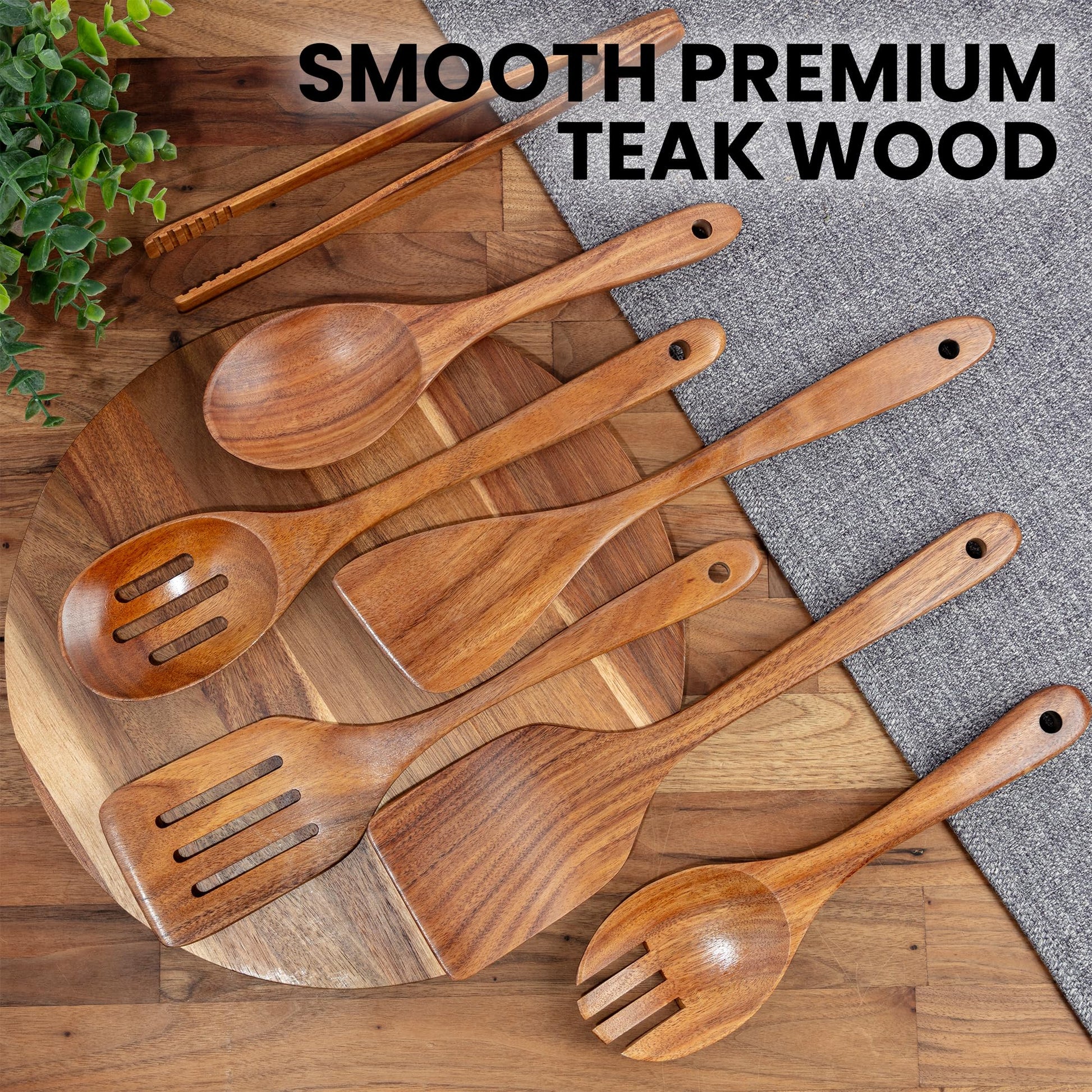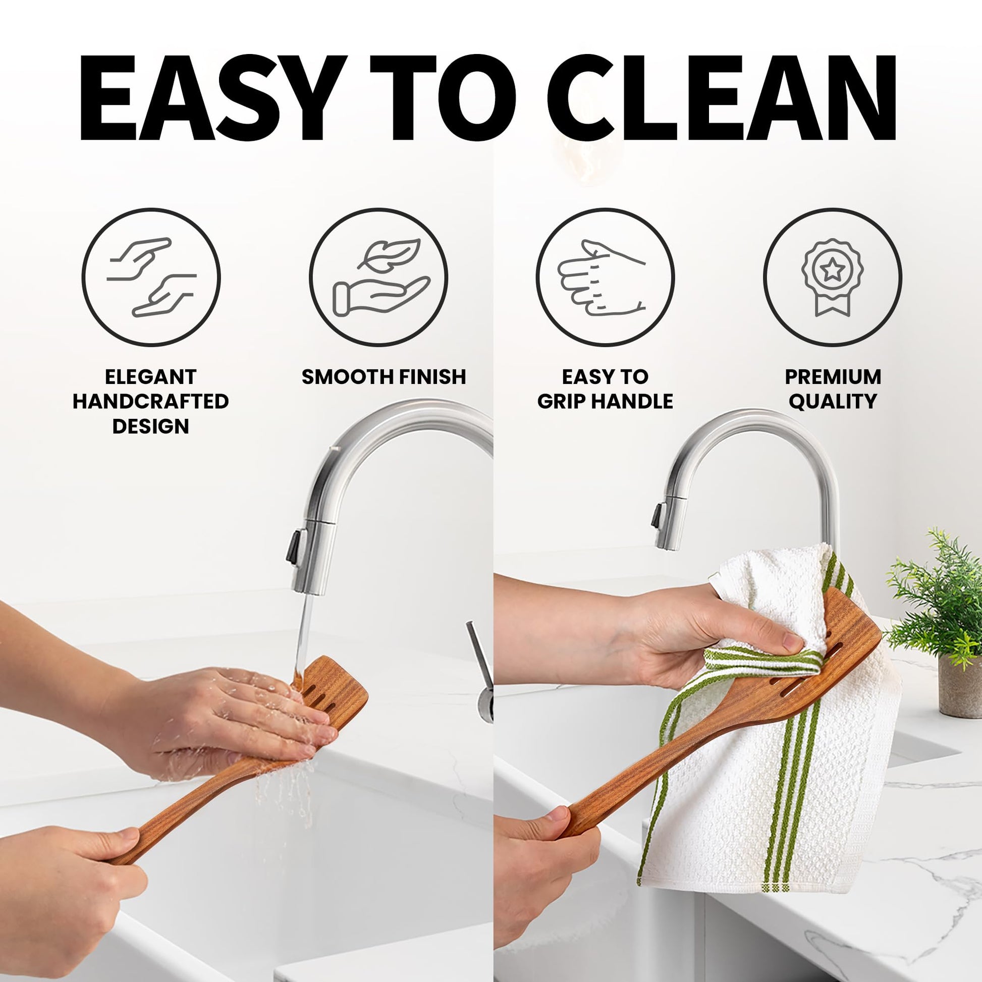 - SCRATCH-FREE DESIGN: Designed to protect non-stick, ceramic, and cast iron cookware, this premium teak wood spoon is lightweight, sturdy, and gentle on surfaces. Perfect for everyday cooking without worrying about scratches or damage.
