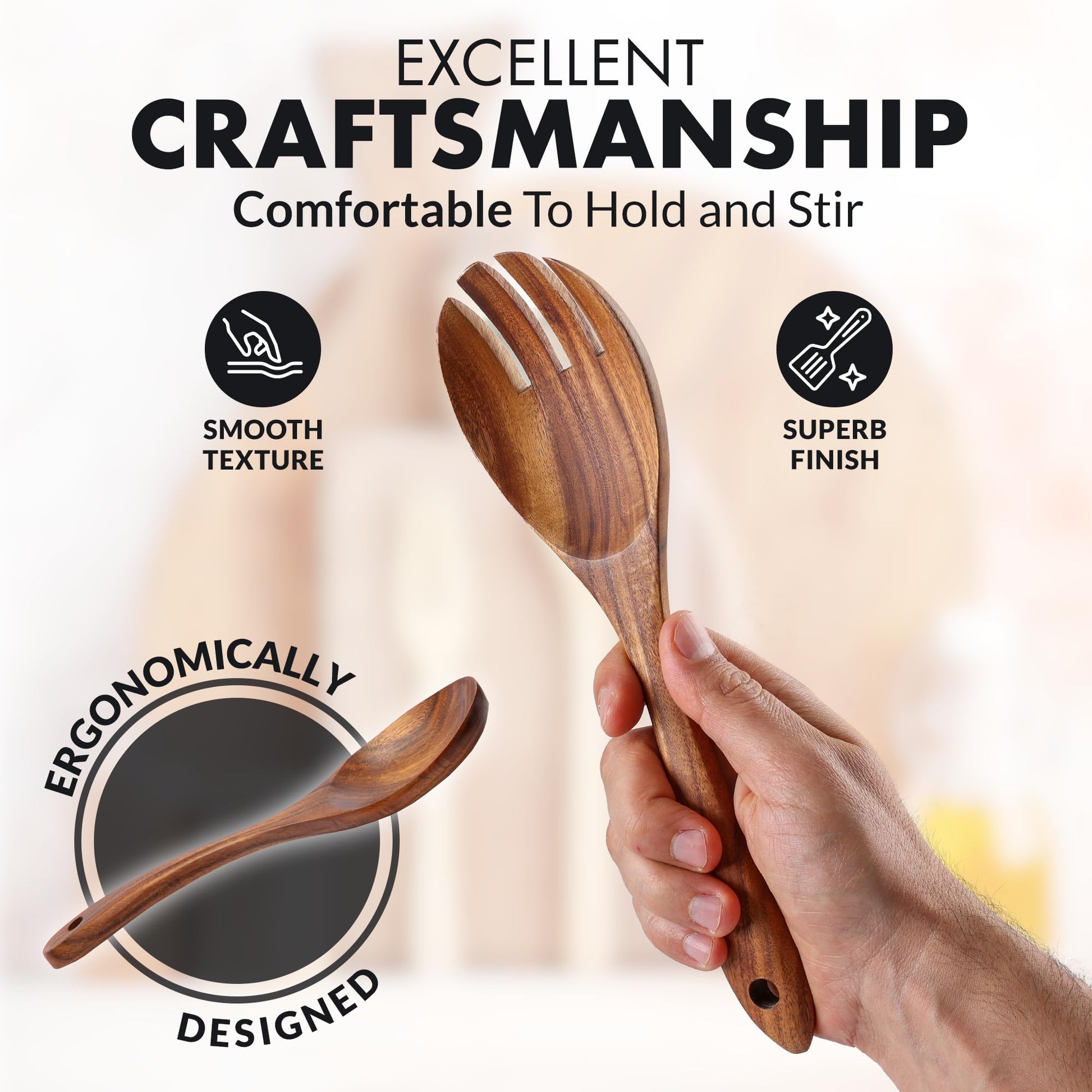 - TOP-NOTCH CRAFTSMANSHIP: The Zulay Kitchen Premium Small Wooden Spoon is expertly crafted from high-quality teak wood, ensuring durability and functionality. Its ergonomic design provides a comfortable grip, making it a perfect tool for stirring, mixing, and serving.